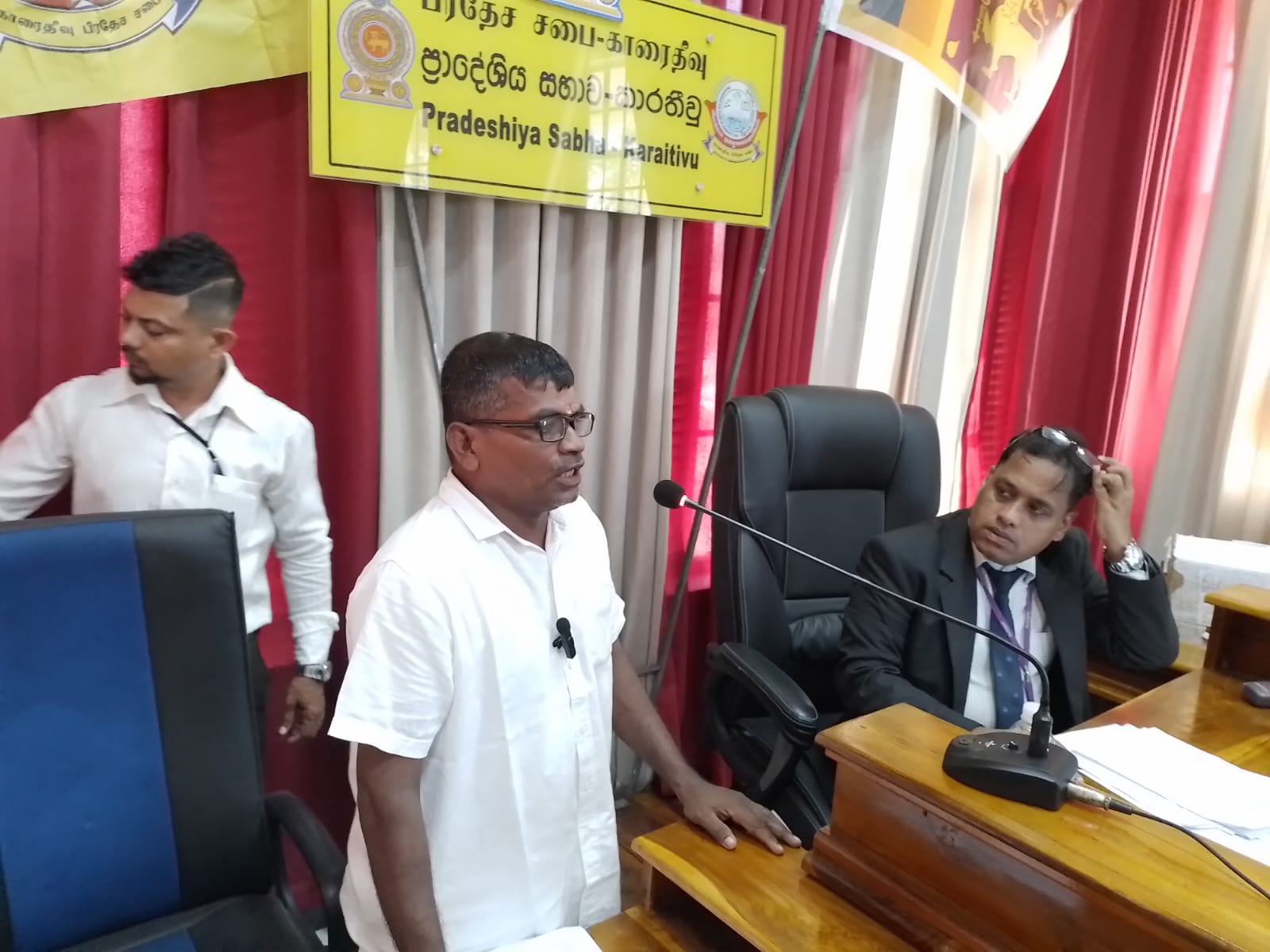 புதிய தவிசாளரை தெரிவு செய்வதற்கான பல்வேறு கட்சிகளையும் சேர்ந்த 11 உறுப்பினர்கள் கூட்ட மண்டபத்தில் சமூகமளித்திருந்தனர்.அம்பாறை மாவட்டம் காரைதீவு பிரதேச சபையில் இலங்கை தமிழரசு கட்சியின் சார்பில் 04 உறுப்பினர்களும் ஸ்ரீலங்கா முஸ்லீம் காங்கிரஸ் 02 அகில இலங்கை மக்கள் காங்கிரஸ் கட்சி சார்பில் 01 தேசிய மக்கள் கட்சி சார்பில் 03 சுயேட்சைக்கழு 01 என 11 பேர் தெரிவு செய்யப்பட்டிருந்தனர். இதன்போது உள்ளுராட்சி ஆணையாளர் புதிய தவிசாளருக்கான முன்மொழிவுகளை கோரினார்.