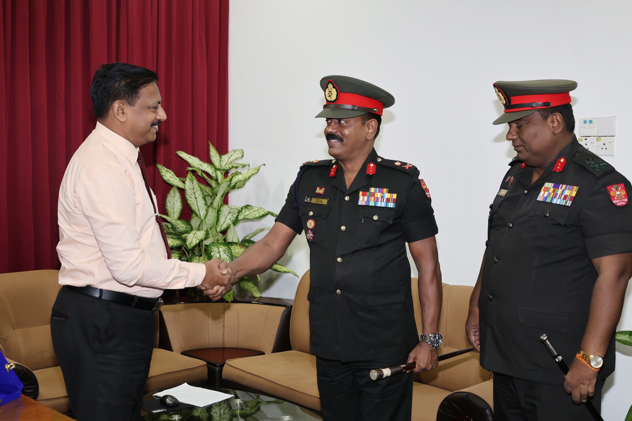 யாழ்ப்பாண மாவட்டத்தின் பாதுகாப்பு படைகளின் கட்டளைத் தளபதியாக புதிதாக பொறுப்பேற்ற மேஜர் ஜெனரல் கே. ஏ. என். ரசீஹ குமார, யாழ்ப்பாண மாவட்ட அரசாங்க அதிபர் மருதலிங்கம் பிரதீபன் அவர்களை இன்றைய தினம் (26.06.2025) காலை 09.00 மணிக்கு மரியாதை நிமித்தம் அரசாங்க அதிபர் அலுவலகத்தில் சந்தித்து கலந்துரையாடினார்.