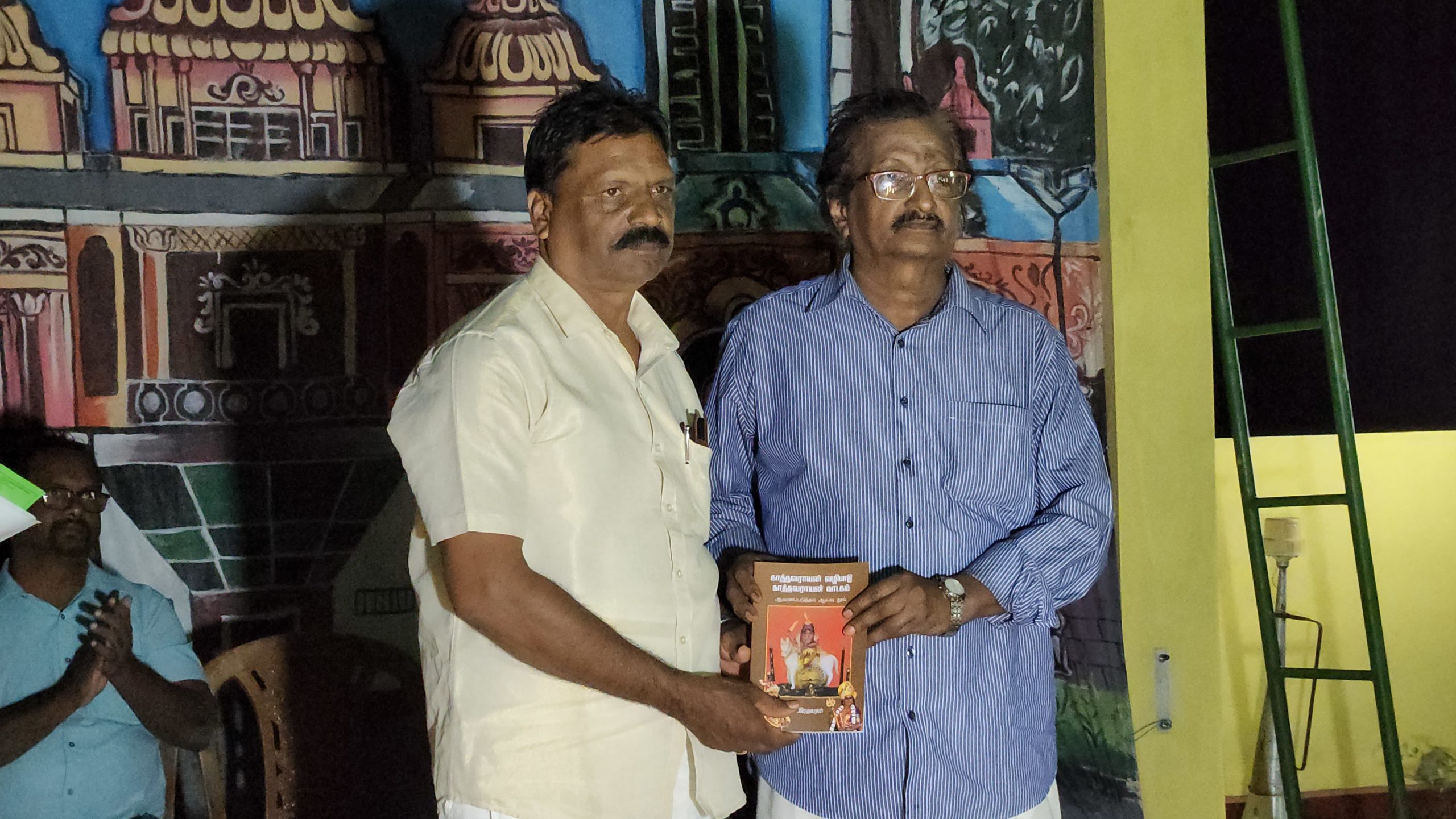 “காத்தவராயன் வழிபாடு – காத்தவராயன் நாடகம்” நூலின் முதற்பிரதியினை அதன் ஆசிரியர் பா. இரகுவரன்