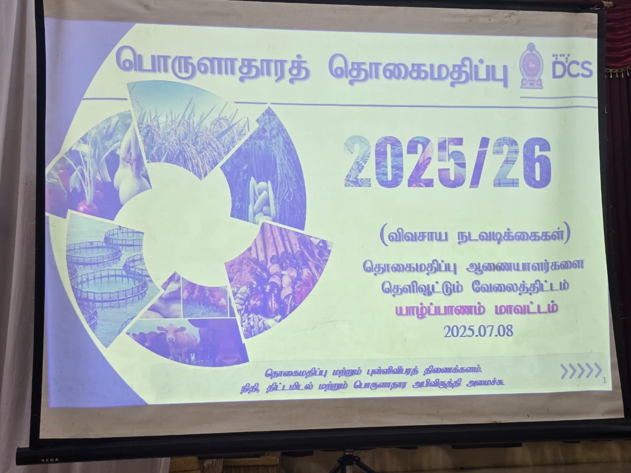 பொருளாதார தொகைமதிப்பு – 2025/26 விவசாய நடவடிக்கைகள் தொடர்பில் தெளிவுபடுத்தும் குறித்த நிகழ்வில் யாழ்ப்பாண மாவட்ட செயலாளர் மருதலிங்கம் பிரதீபன், யாழ்ப்பாண மாவட்ட மேலதிக அரசாங்க அதிபர் சிவகரன் உள்ளிட்ட