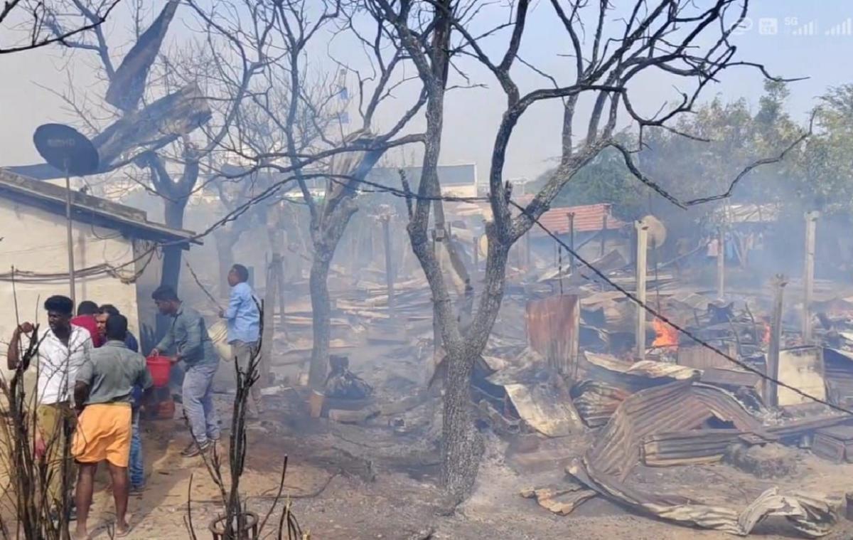 இந்நிலையில், நேற்று காலை அனைவரும் பணிக்கு சென்ற நிலையில், மதியம் வேலையில் ஒரு வீட்டில் காஸ் கசிவு காரணமாக சிலிண்டர் வெடித்தது. அந்த வீட்டில் பற்றிய தீ அடுத்தடுத்த வீடுகளுக்கும் பரவியதால், 9 வீடுகளில் சிலிண்டர்கள் வெடித்து பெரும் விபத்து ஏற்பட்டது. இதில் 42 தகர கொட்டகை வீடுகளும் தூக்கி எறியப்பட்டு தரைமட்டமாகின.