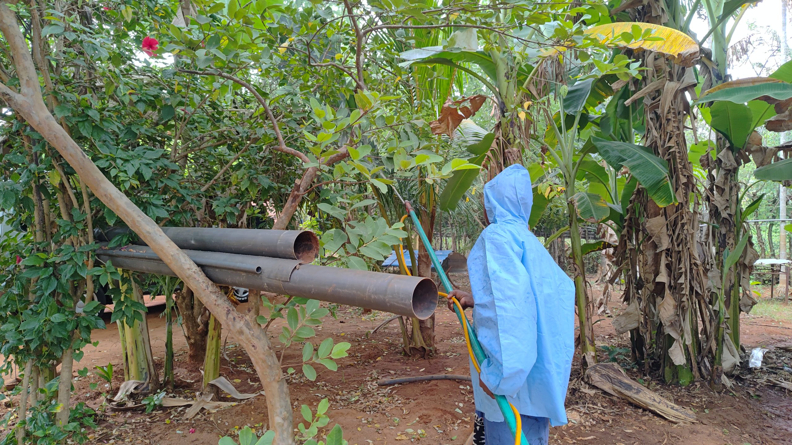 இதன்போது விவசாய திணைக்களத்தின் மருந்து விசிறும் இயந்திரத்தின் உதவியுடன் தென்னை மரங்கள் காணப்படும் வீடுகளுக்கு குழுக்களாக செல்லும் தென்னைப் பயிர்ச் செய்கை சபையினர் மற்றும் கமநல சேவை உத்தியோகத்தர்கள் அனைத்து தென்னை மரங்களுக்கும் மருந்து விசிறும் வேலைத்திட்டத்தை மேற்கொண்டனர்.