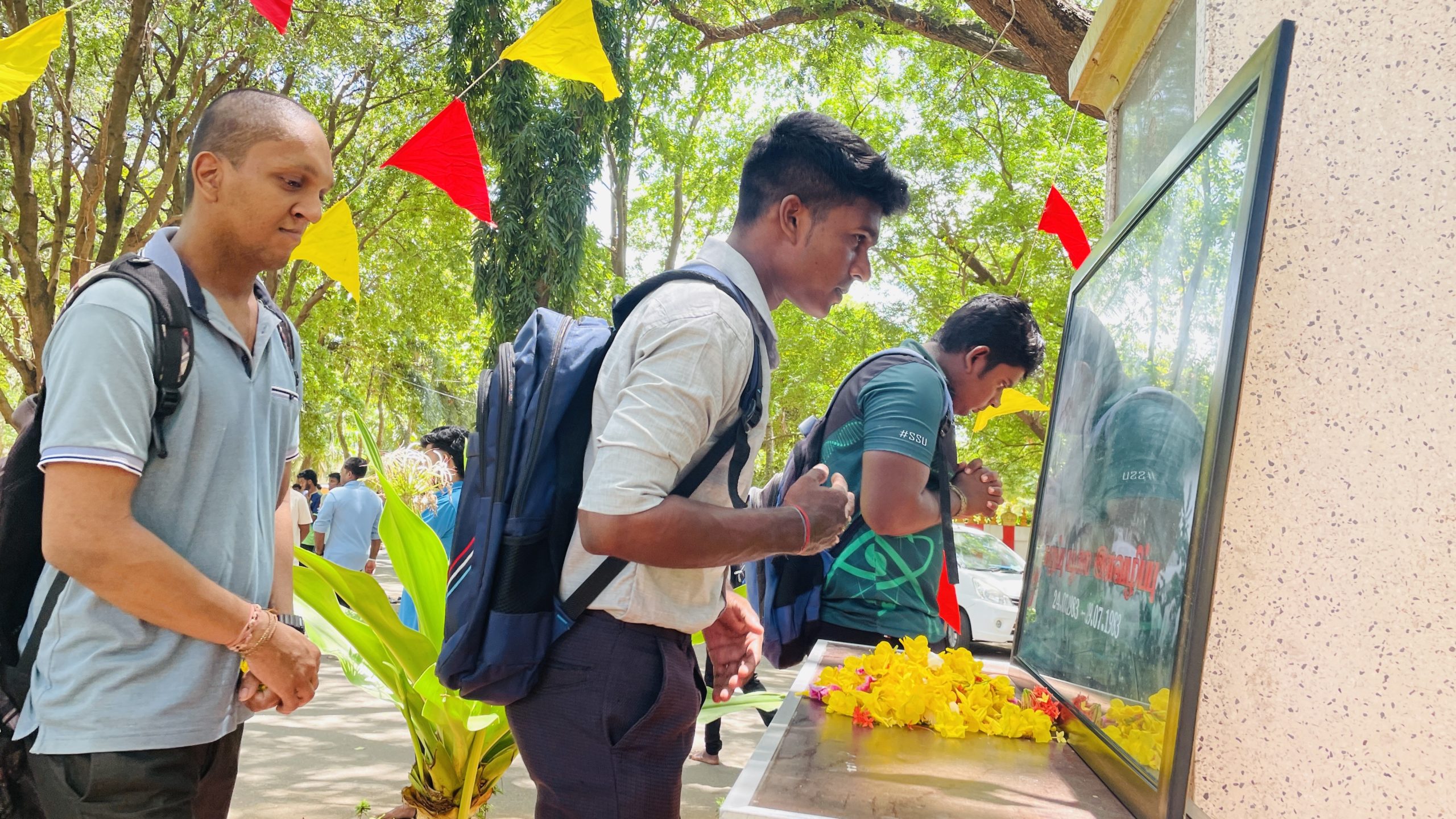 யாழ் பல்கலை கழக வளாகத்தில் மாணவர்களின் ஏற்பாட்டில் நடைபெற்ற நினைவேந்தல் நிகழ்வில் படுகொலை செய்யப்பட்டவர்களுக்காக மலர்தூவி அஞ்சலி செலுத்தினர்.
