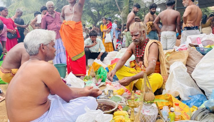ஆடி அமாவாசை பிதிர்க்கடன் நிறைவேற்றும் பூசை வழிபாடுகள் கீரிமலை கண்டகி தீர்த்த கரையில் இன்றைய தினம் வியாழக்கிழமை நடைபெற்றது.