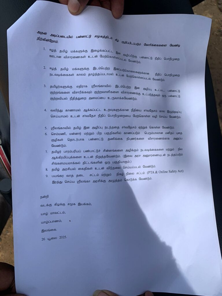 அந்தவகையில் யாழ்ப்பாணம் செம்மணி புதைகுழிக்கு அண்மித்த பகுதியான, நல்லூர் வீதி வளைவு அமைந்துள்ள பகுதியில் இந்தப் போராட்டமானது சற்றுமுன்னர் ஆரம்பமாகியுள்ளது.