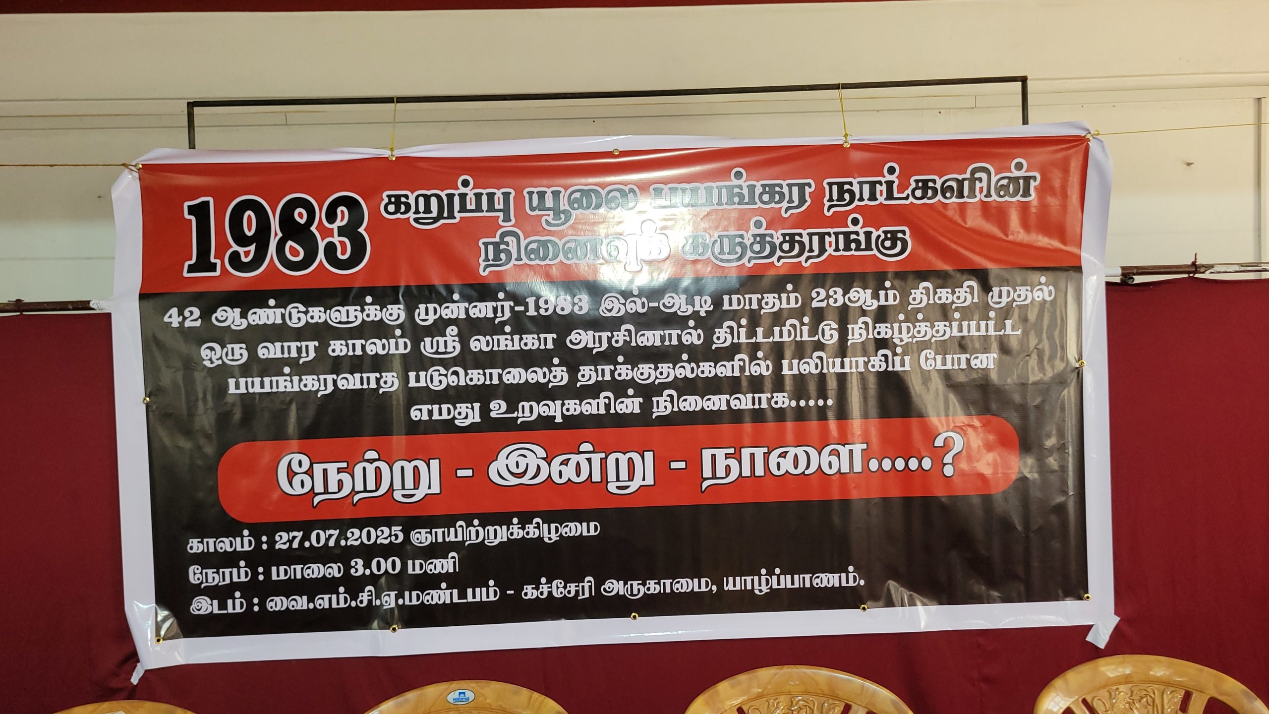 கறுப்பு ஜூலை நினைவுக் கருத்தரங்கு “நேற்று – இன்று- நாளை” எனும் தொனிப்பொருளில் யாழ்ப்பாணத்தில் நேற்றைய தினம் ஞாயிற்றுக்கிழமை இடம்பெற்றது.