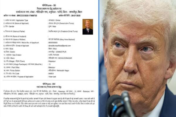 ஜூலை 29 -ம் திகதி அன்று தாக்கல் செய்யப்பட்ட இந்த விண்ணப்பம் போலியானது என்றும், டொனால்ட் டிரம்பை சமஸ்திபூரில் உள்ள ஹசன்பூர் கிராமத்தில் வசிப்பவர் என்று காட்ட முயன்றதும் தெரியவந்துள்ளது.