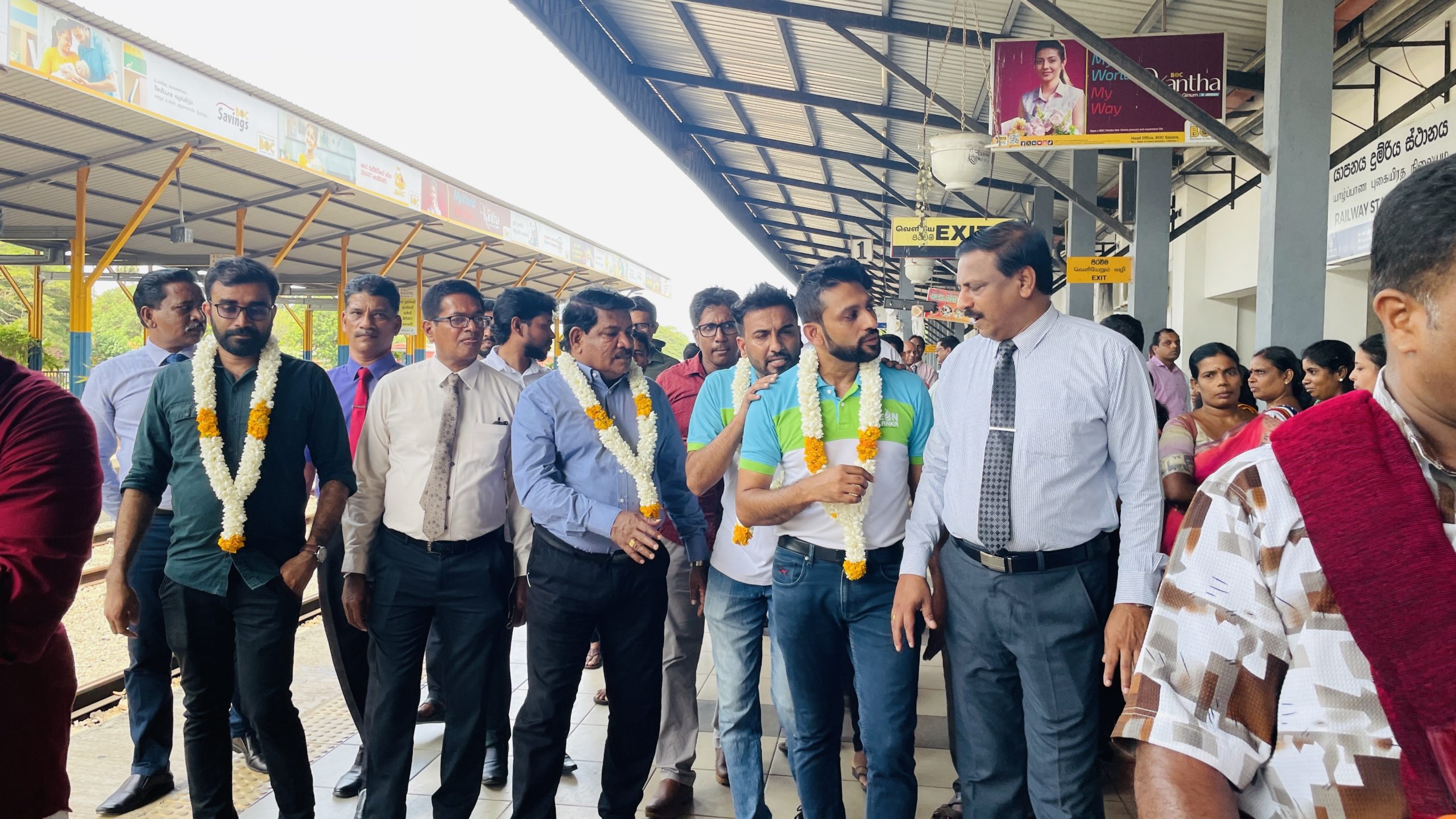 கிளீன் ஶ்ரீலங்கா பணிப்பாளர்களான தசூன் உதார ,துலீப் சேமரத்தன மற்றும் சாரதா உள்ளிட்டவர்கள் அடங்கிய குழுவினர்களுக்கு யாழ்ப்பாண புகையிரத நிலையத்தில் பலத்த வரவேற்பு அளிக்கப்பட்டது.