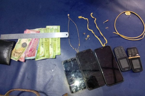 அவரை மறித்து சோதித்த போது அவரது காற்சட்டை பொக்கற்றில் தாலிக்கொடி, சங்கிலி, மோதிரங்கள், பென்ரன்கள், இருந்ததை அவதானித்துள்ளனர்.
