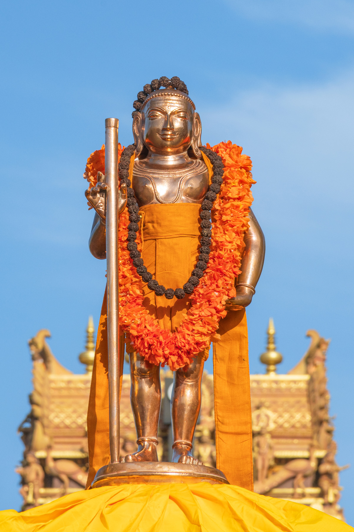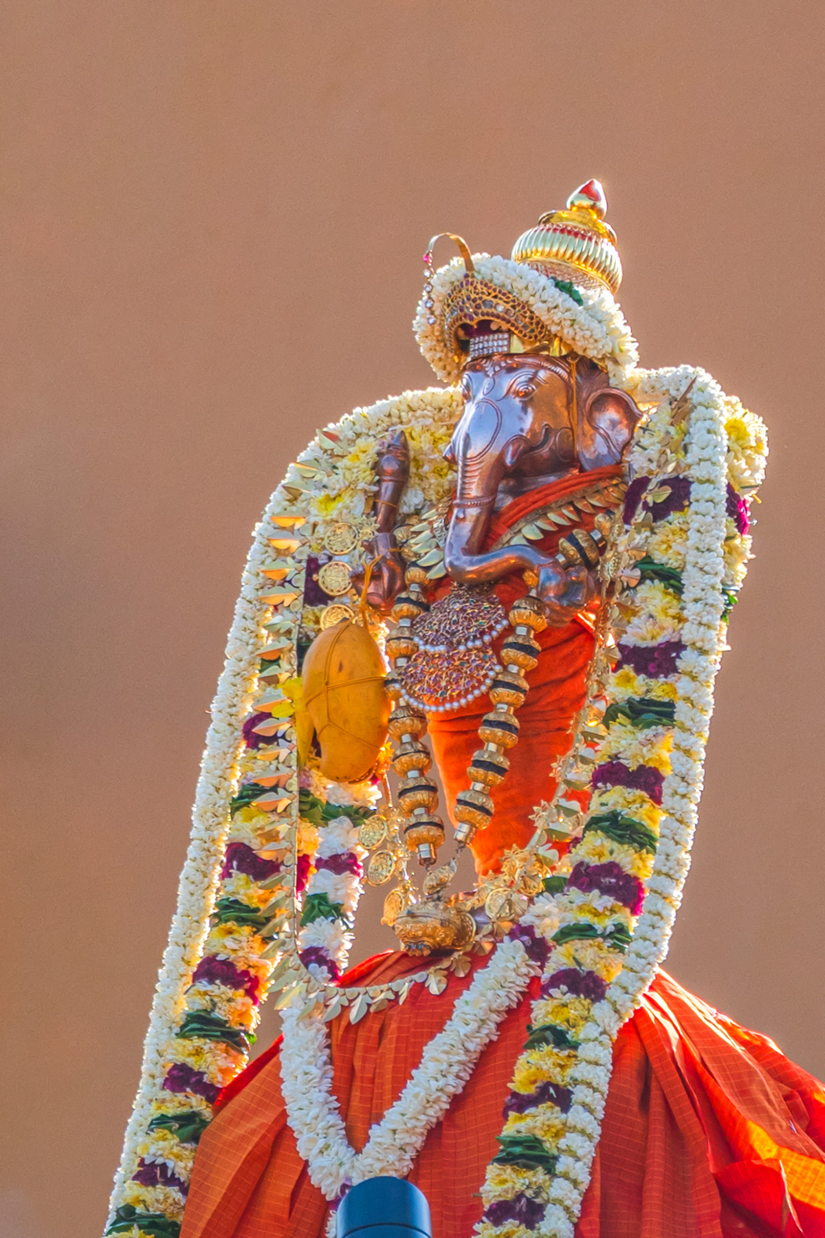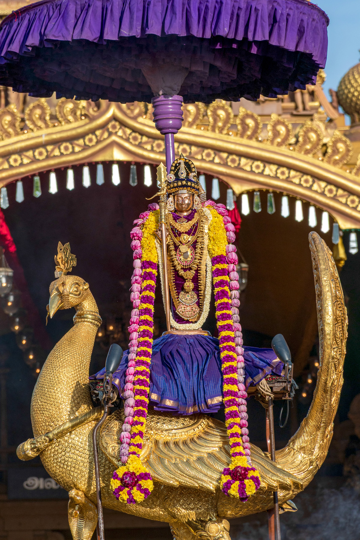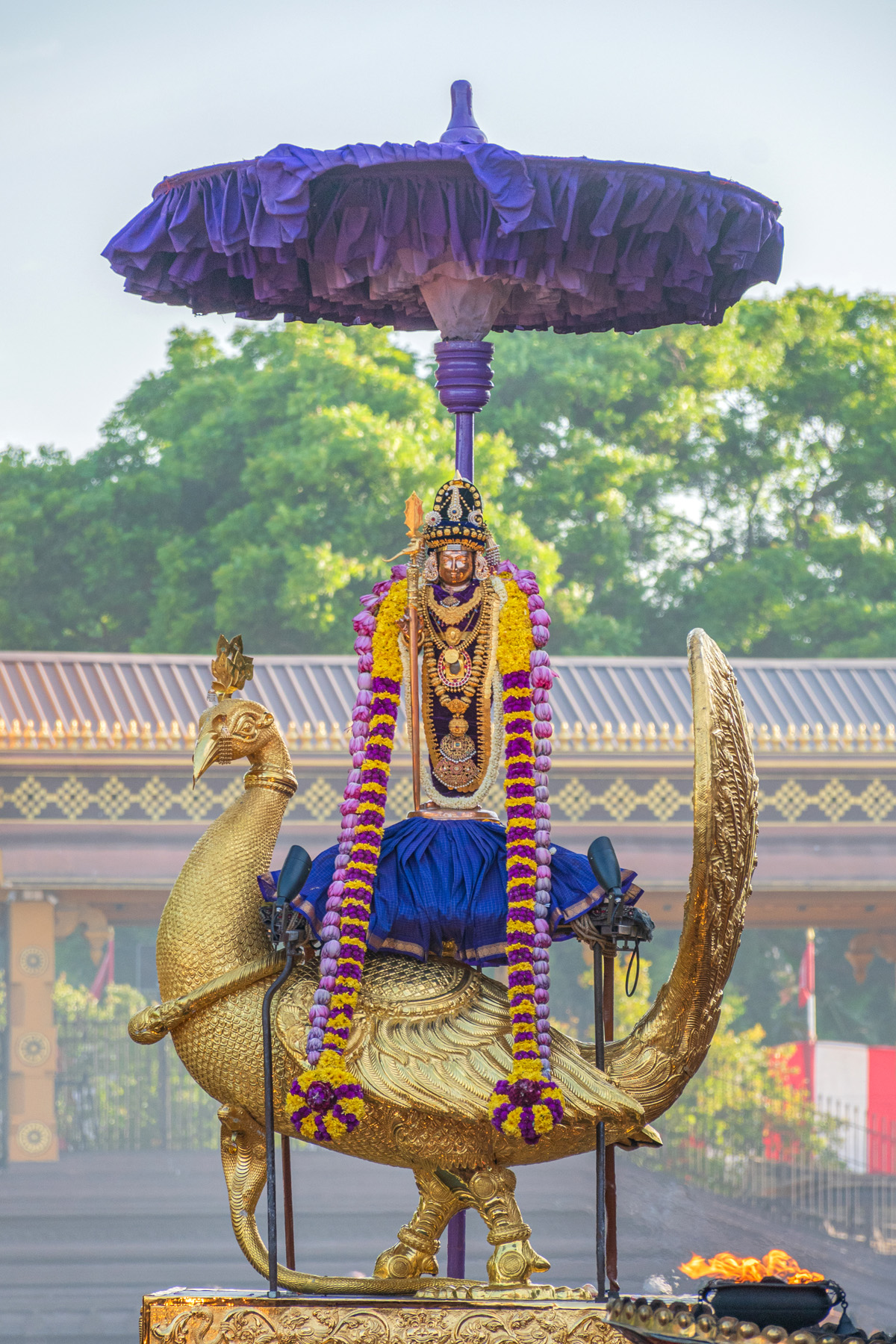 உடனே முருகபெருமான் மயில் மீதேறி உலகை சுற்றி வர சென்ற போது , பிள்ளையார் சிவபெருமானையும், உமாதேவியாரையும் சுற்றி வந்து நீங்களே என் உலகம் என கூறி மாம்பழத்தை பெற்றுக்கொண்டார்.