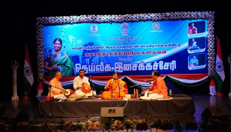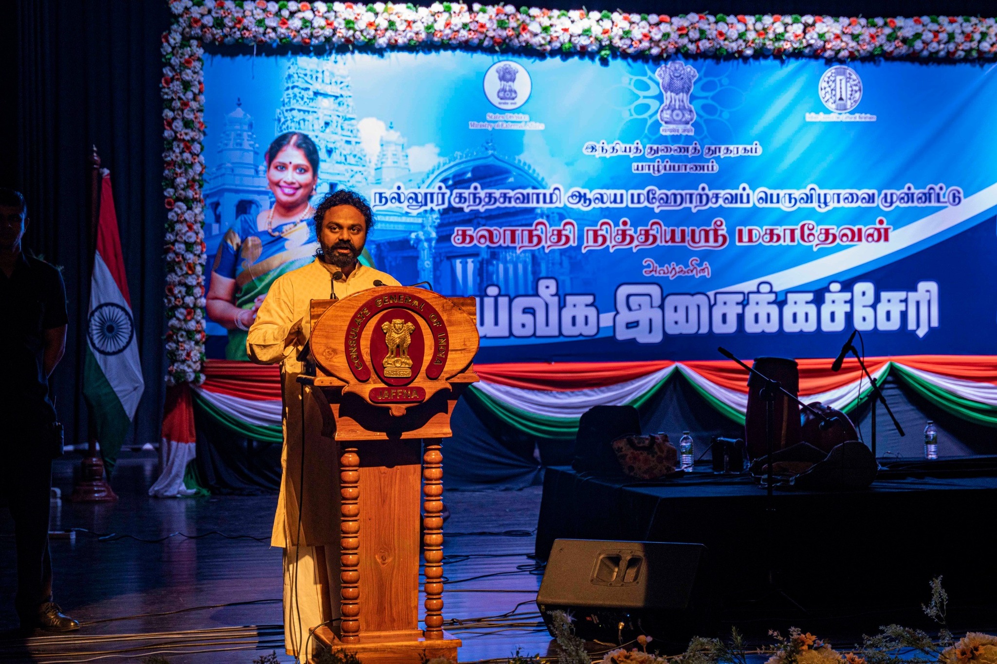 நல்லூர் கந்தசுவாமி ஆலய வருடாந்திர மகோற்சவத்தை முன்னிட்டு , இந்திய துணைத்தூதரகத்தின் ஏற்பாட்டில் பிரபல கர்நாடக இசைக் கலைஞர் கலாநிதி நித்தியஸ்ரீ மகாதேவனின் கர்நாடக இசை நிகழ்வு, யாழ்ப்பாண கலாச்சார மண்டபத்தில் நேற்றைய தினம் செவ்வாய்க்கிழமை இரவு நடைபெற்றது.