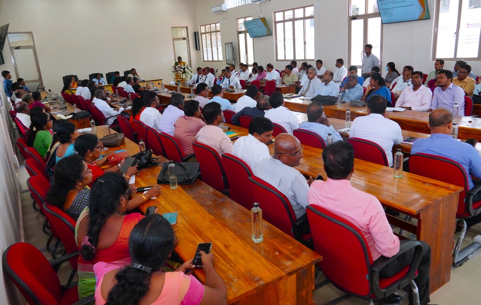 வடக்கு மாகாணத்திலுள்ள உள்ளூராட்சி மன்றங்களின் மேயர்கள், தவிசாளர்களுடனான விசேட கலந்துரையாடல் வடக்கு மாகாண ஆளுநர் நா.வேதநாயகன் தலைமையில், உள்ளூராட்சி அமைச்சர் கலாநிதி எச்.எம்.எச்.அபயரத்தன, பிரதி அமைச்சர் பி.ருவான் செனரத் ஆகியோரின் பங்கேற்புடன் வடக்கு மாகாண உள்ளூராட்சி ஆணையாளர் அலுவலகத்தில் நேற்றைய தினம் புதன்கிழமை இடம்பெற்றது.