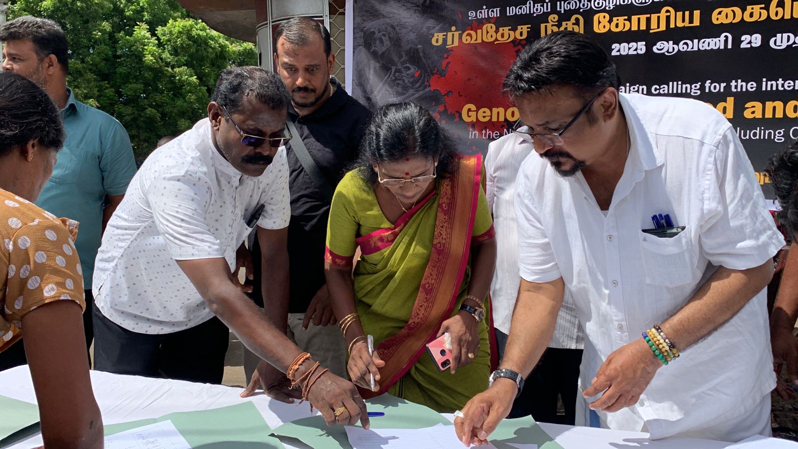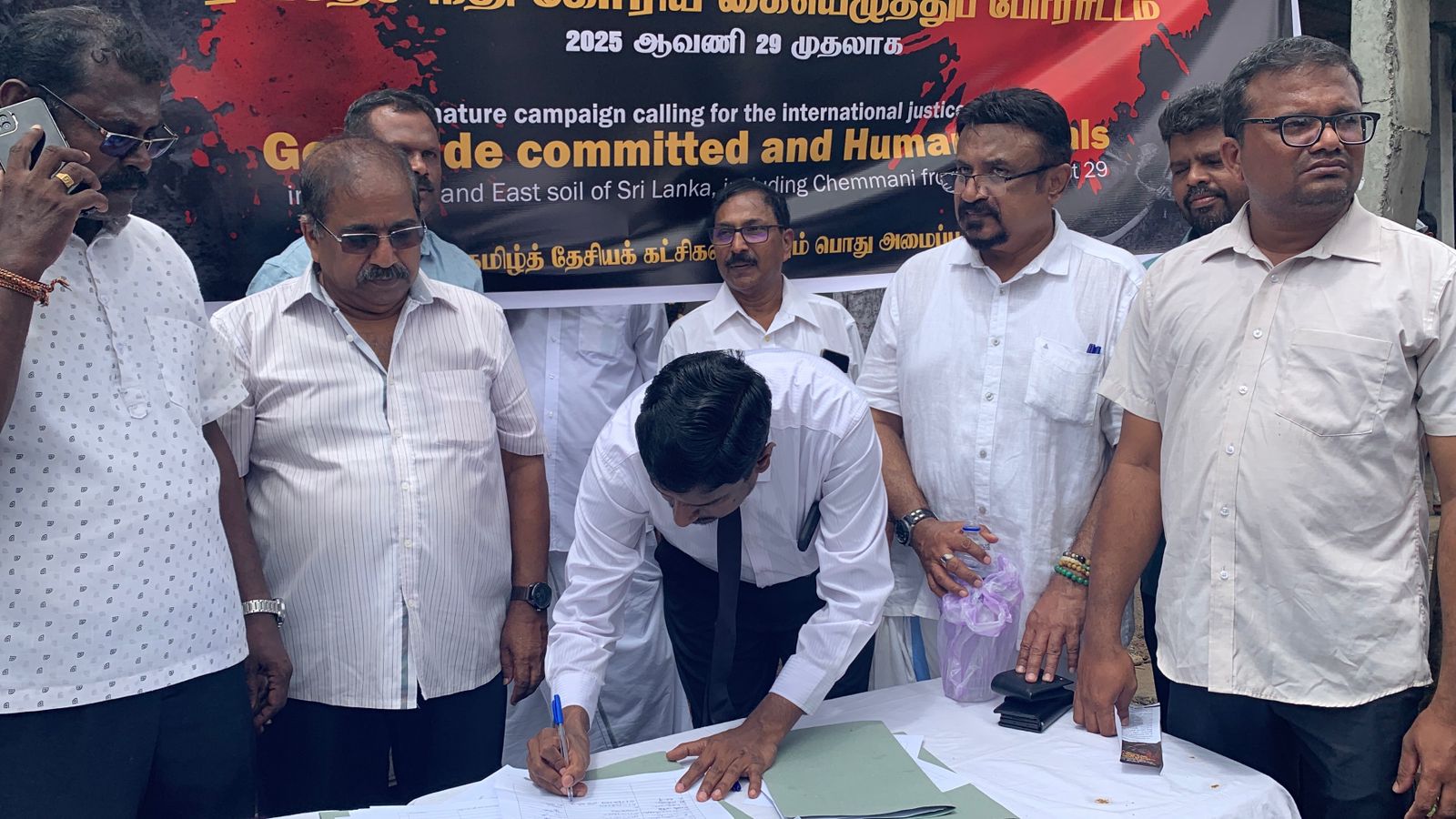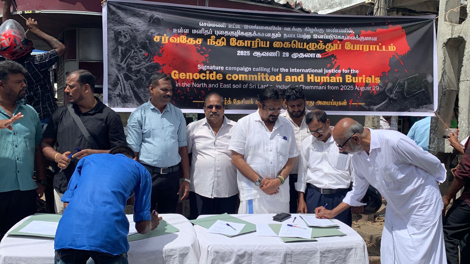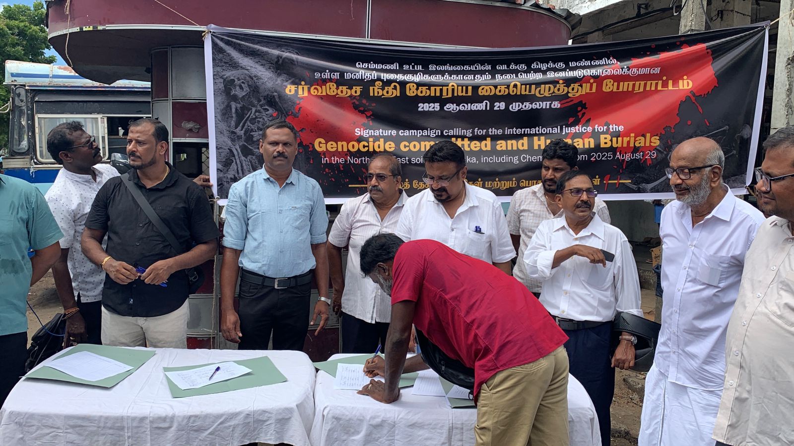 செம்மணி உட்பட இலங்கையின் வடக்கு, கிழக்கு மண்ணில் இனங்காணப்பட்ட மனிதப் புதைகுழிகள் மற்றும் நடைபெற்ற தமிழ் இனப்படுகொலைகளுக்கும் நீதியைக் கோருவதற்காக தமிழ்த் தேசியக் கட்சிகள் மற்றும் பொது அமைப்புகளின் ஏற்பாட்டில் கையெழுத்துச் சேகரிக்கும் செயற்பாடு வடக்கு, கிழக்க மாகாணங்களின் பலபகுதிகளிலும் , இன்றைய தினம் ஆரம்பிக்கப்பட்டு இடம்பெற்றுவருகின்றது.