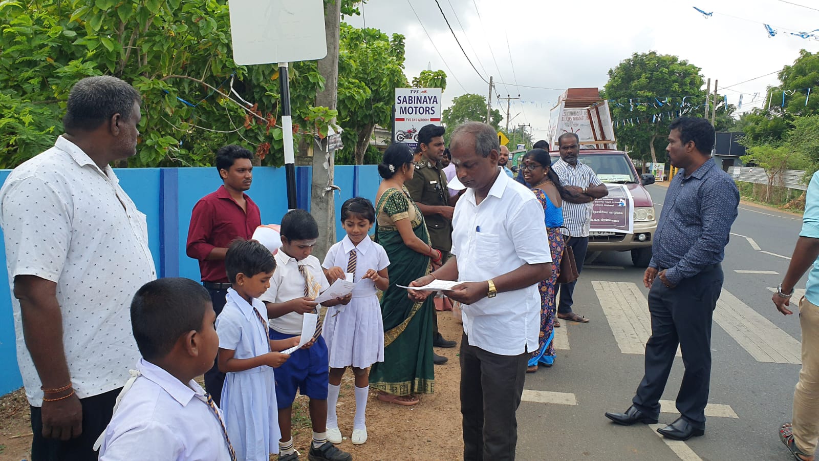 மல்லாகம் விசலாட்சி வித்தியாலயத்தில் ஆரம்பித்து, காங்கேசந்துறை வீதியூடாக துண்டுப் பிரசுரங்கள் வழங்கி யாழ் காங்கேசன்துறை நடேஸ்வராக் கல்லூரி வரை நடைபவனி முன்னெடுக்கப்பட்டது