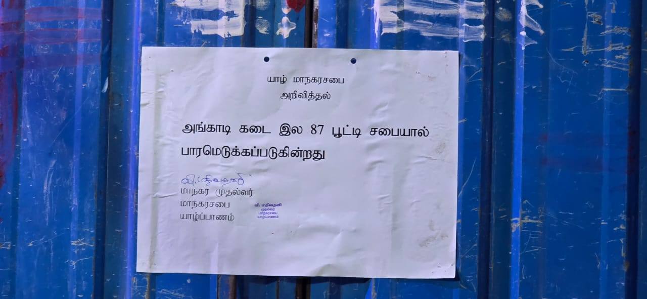 யாழ்ப்பாண மாநகர சபையினால் சீல் வைத்து பூட்டப்பட்ட கடையினை, அக்கடையில் வியாபார நடவடிக்கையில் ஈடுபட்ட நபர் அத்துமீறி கடையினை திறந்து வியாபார நடவடிக்கை மேற்கொண்ட நிலையில் குறித்த கடையினை மாநகர சபை முழுமையாக பொறுப்பேற்றுள்ளது.