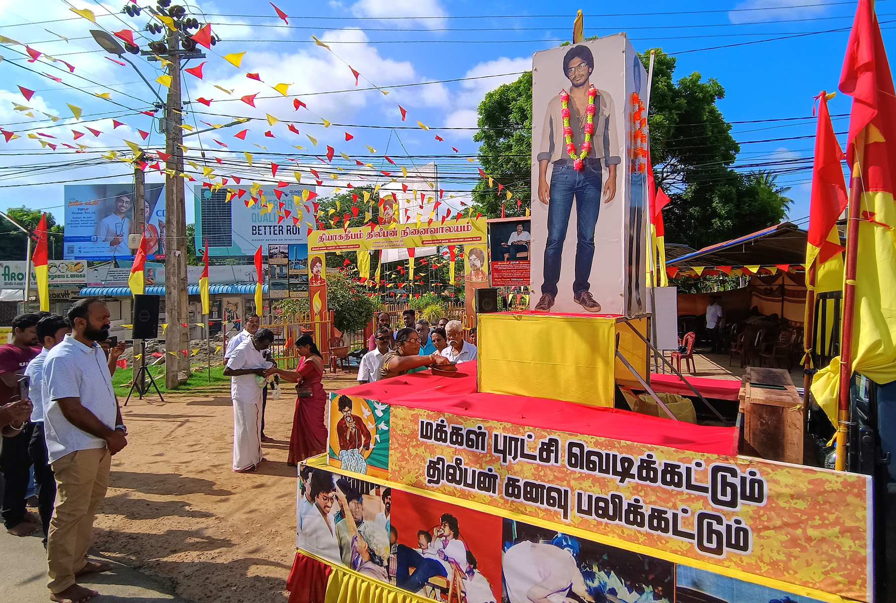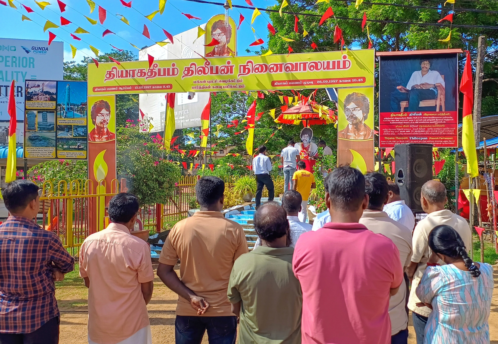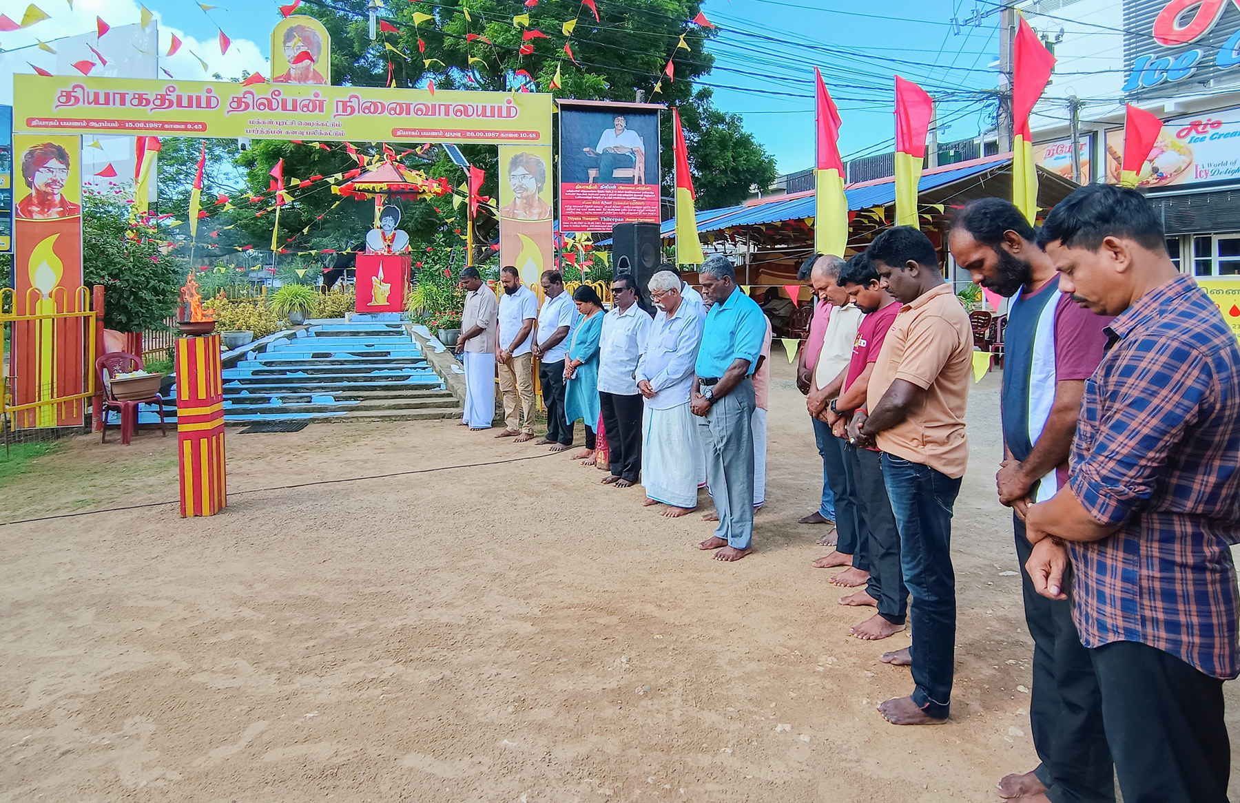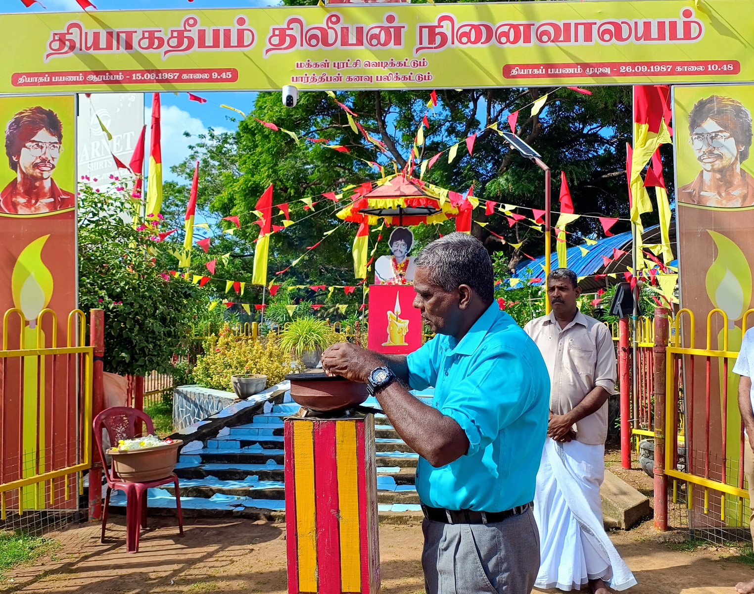 நல்லூர் பின் வீதியில் அமைந்துள்ள தியாக தீபத்தின் நினைவிடத்தில், சுடரேற்றி, திருவுருவ படத்திற்கு மாலை அணிவித்து, மலர் தூவி அஞ்சலி செலுத்தப்பட்டது.
