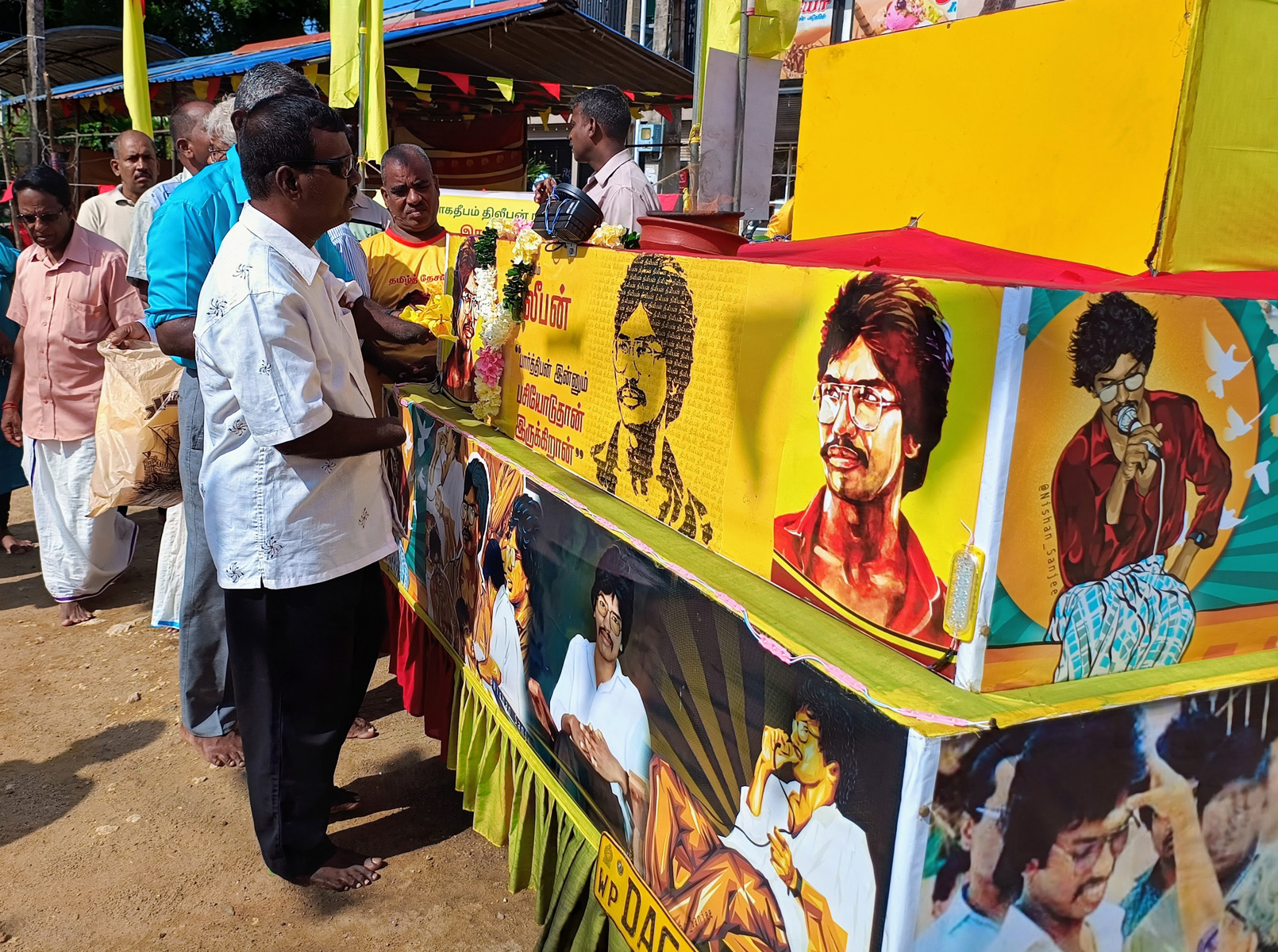 அதேவேளை தியாக தீபத்தின் திருவுருவ படத்தை தாங்கிய ஊர்தியும் நினைவிடத்திற்கு வருகை தந்த நிலையில் , ஊர்தியில் இருந்த திருவுருவ படத்திற்கும் மலர் தூவி அஞ்சலி செலுத்தப்பட்டது.