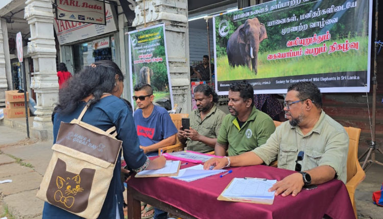 “உங்கள் பேராசைக்காக யானைகளைக் கொல்லாதீர்கள்” எனும் தொனிப்பொருளில் இன்று ஆரம்பமான கையொப்பம் சேகரிக்கும் நடவடிக்கை நாளையும் யாழ்ப்பாணத்தில் தொடரவுள்ளது.