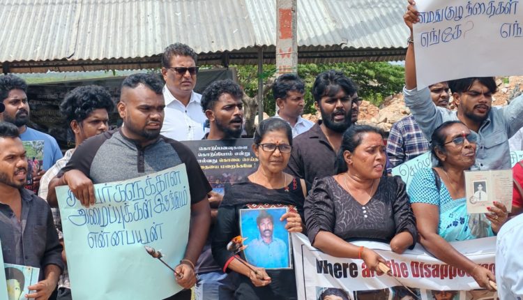 குறித்த போராட்டத்தில், வடக்கின் ஐந்து மாவட்டங்களை சேர்ந்த வலிந்து காணாமல் ஆக்கப்பட்டவர்களின் உறவினர்கள், செயற்பாட்டாளர்கள் மற்றும் பொதுமக்கள் கலந்துகொண்டுள்ள நிலையில், போராட்டத்தின் ஆரம்பத்தில் அணையா விளக்கு பகுதியில் சுடரேற்றி மலரஞ்சலி செலுத்தி போராட்டத்தை ஆரம்பமானது.
