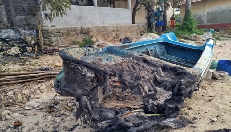 பொலிகண்டியில் கடற்கரையில் நிறுத்தி வைக்கப்பட்டிருந்த படகில் தீ