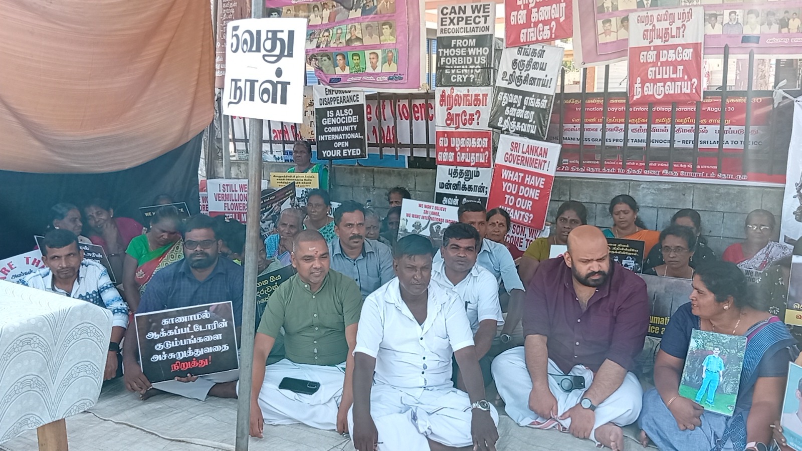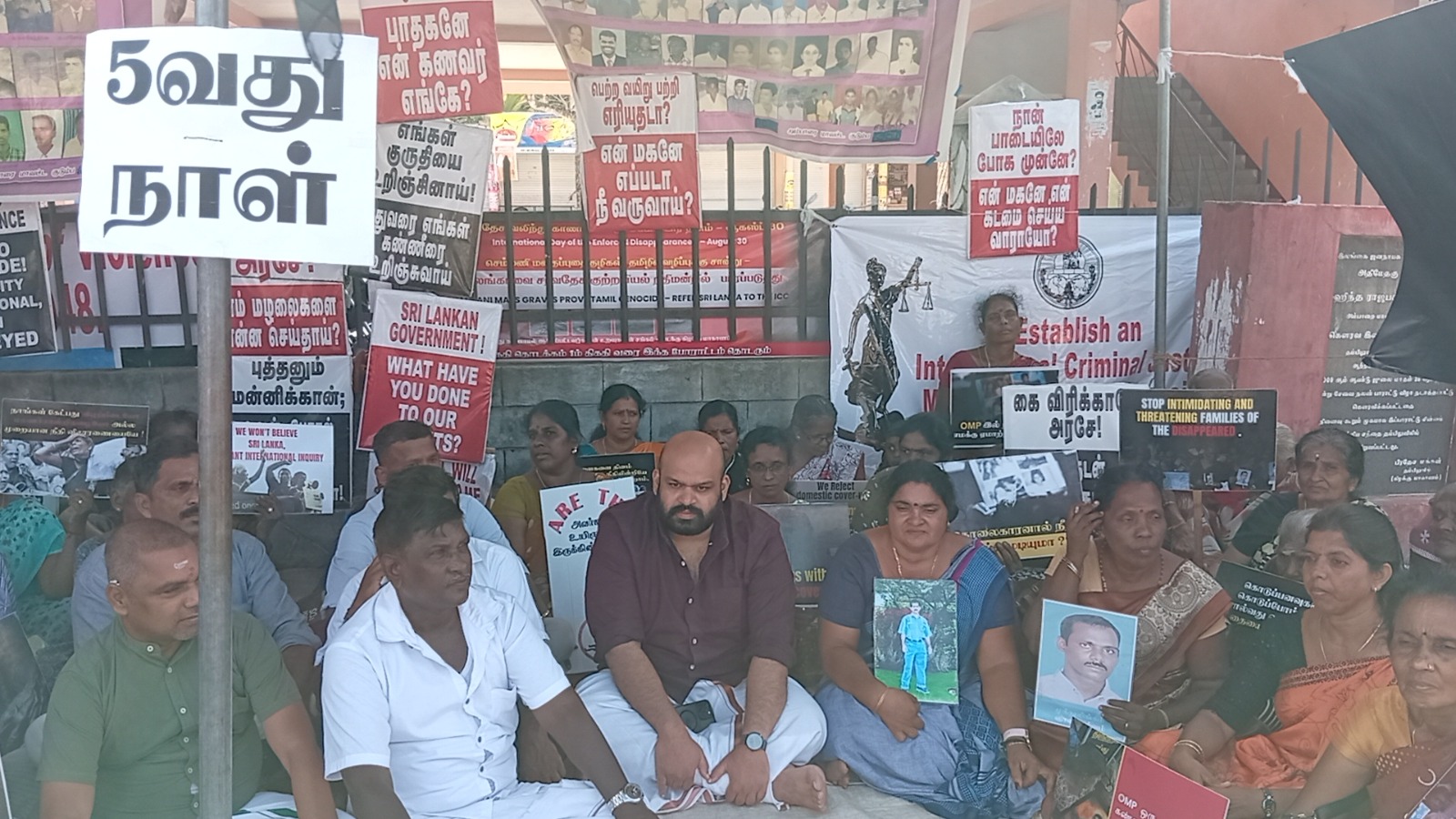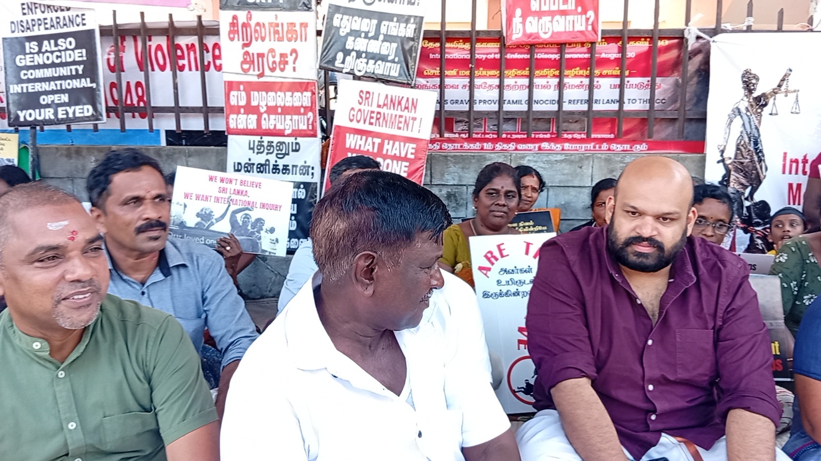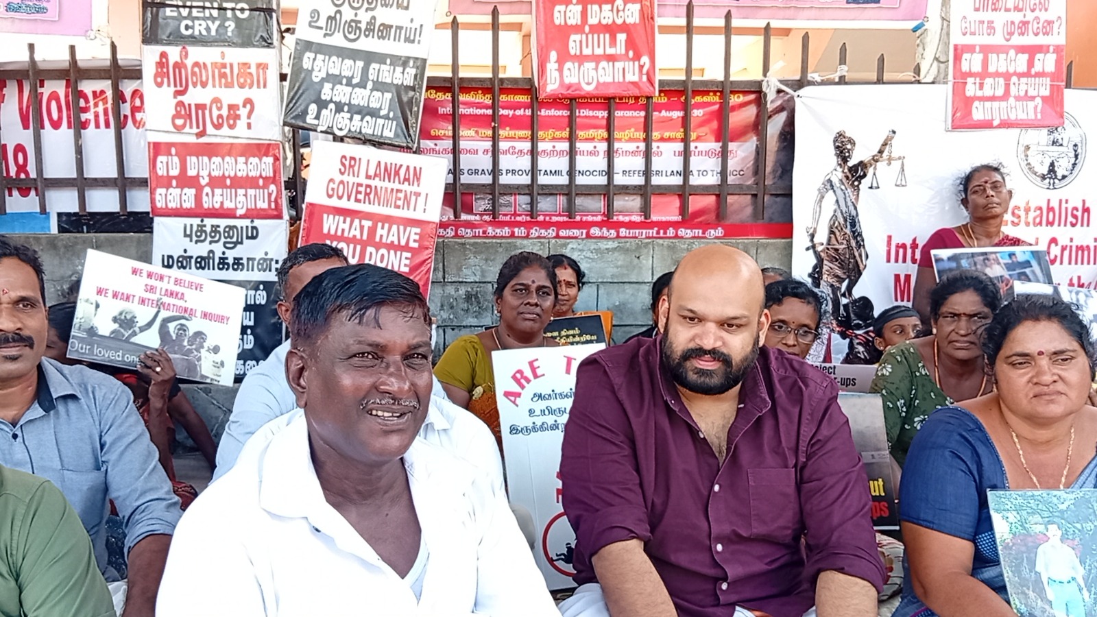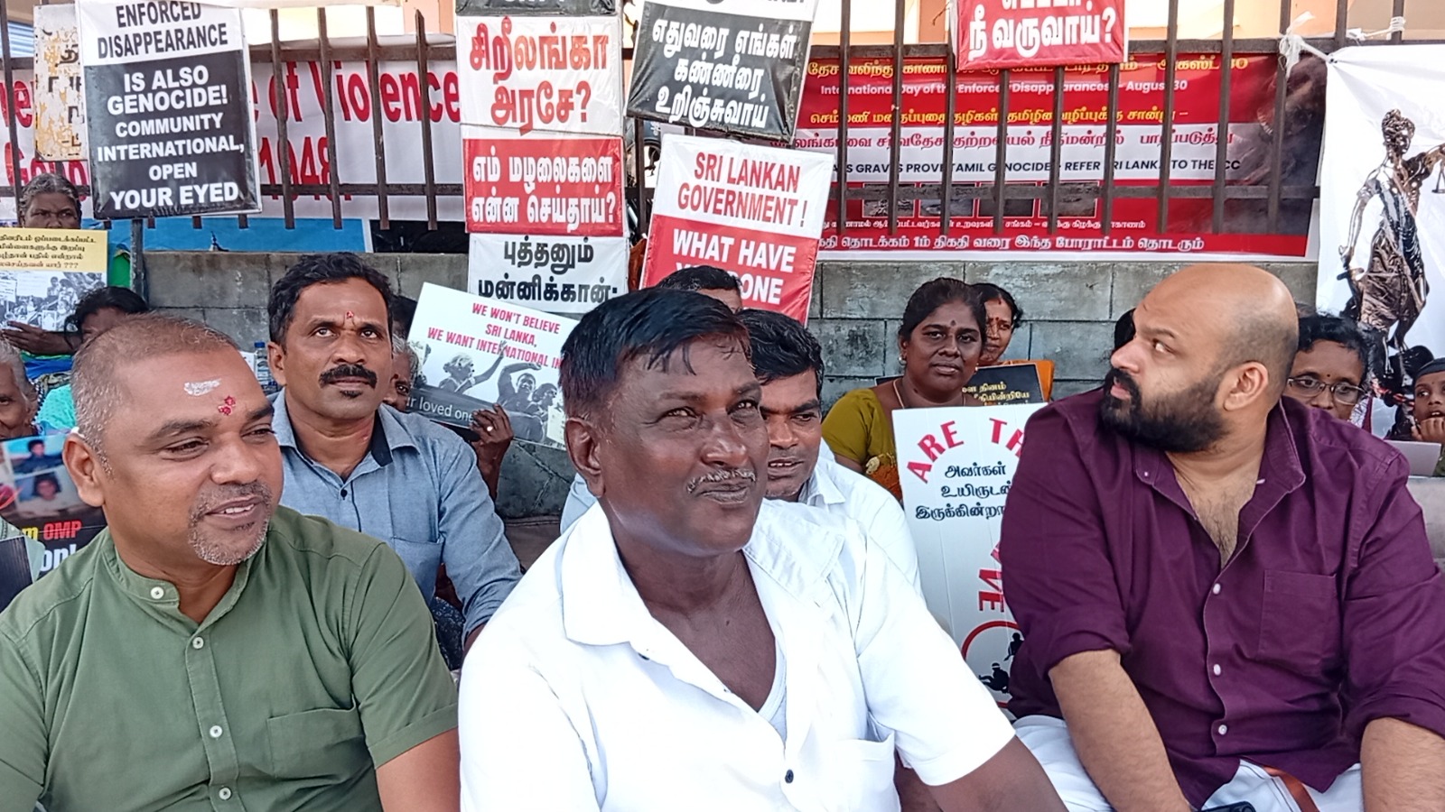 வடக்குஇ கிழக்கு வலிந்து காணாம லாக்கப்பட்ட உறவுகளின் சங்கத்தினரால் ஸ்ரீலங்காவின் உள்நாட்டு பொறி முறையை நிராகரிக்கின்றோம் தமிழின வழிப்பு வலிந்து காணாமல் ஆக்கப்படுதல் போர் குற்றங்கள் மற்றும் மனித புதைகுழிகள் குறித்து நாம் சர்வதேச சுயாதீன விசாரணையை மட்டுமே கோரு கின்றோம் எனும் தொனிப் பொருளுடன் இப் போராட்டம் நடைபெற்றிரந்தமை குறிப்பிடத்தக்கது.