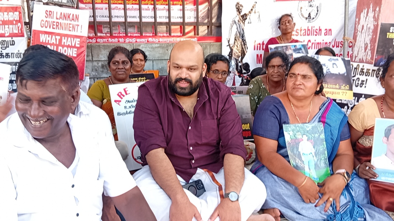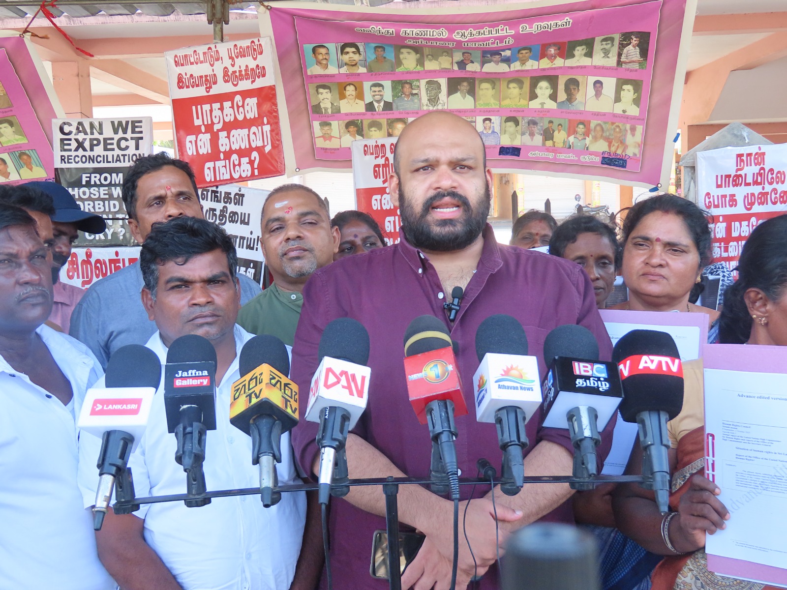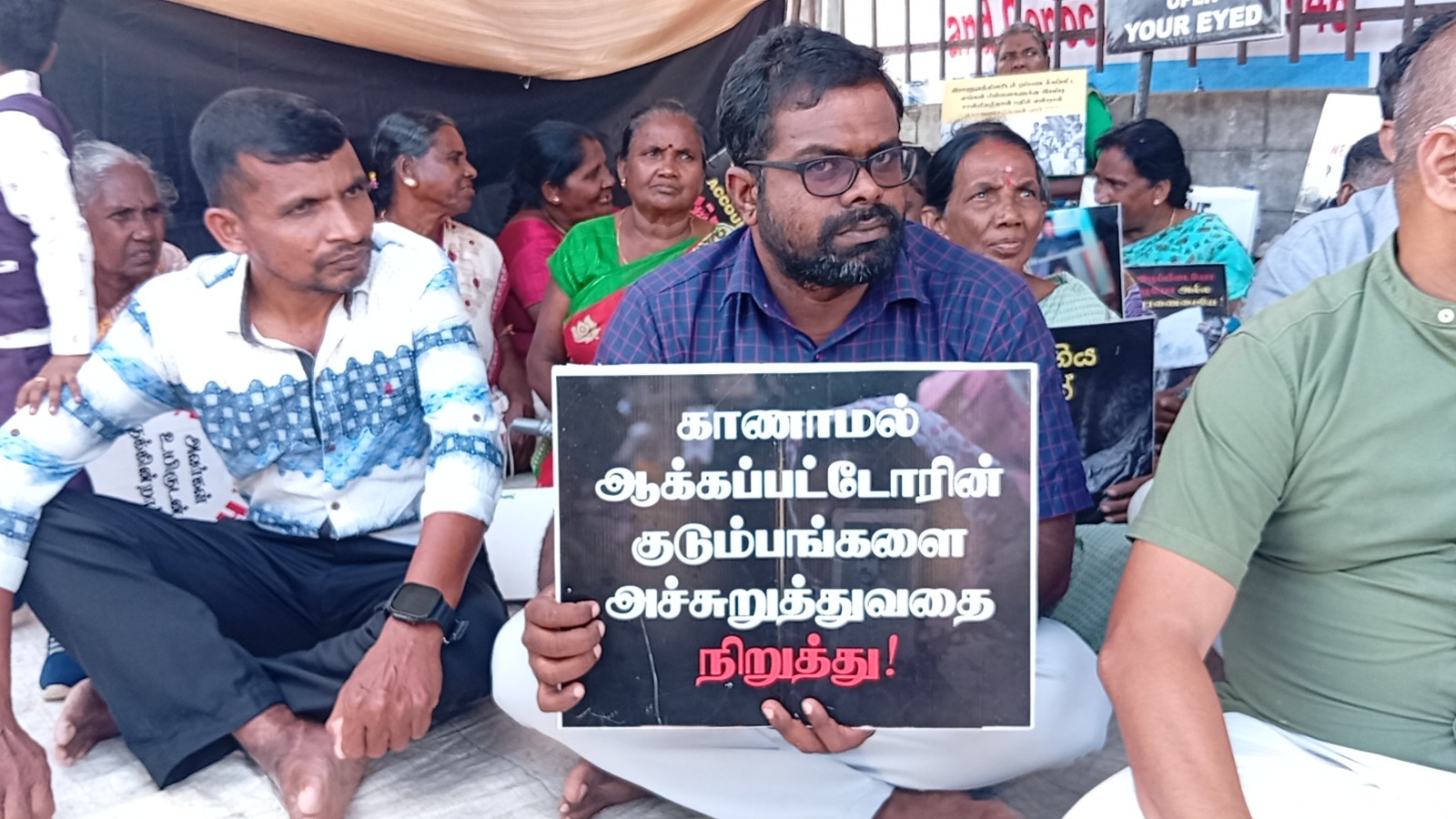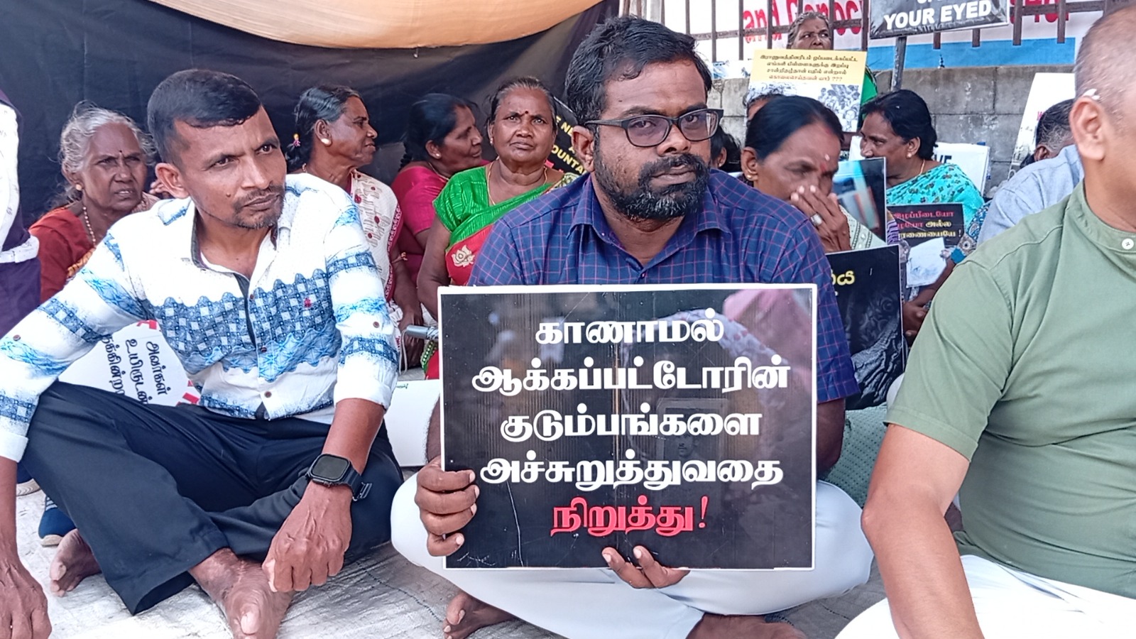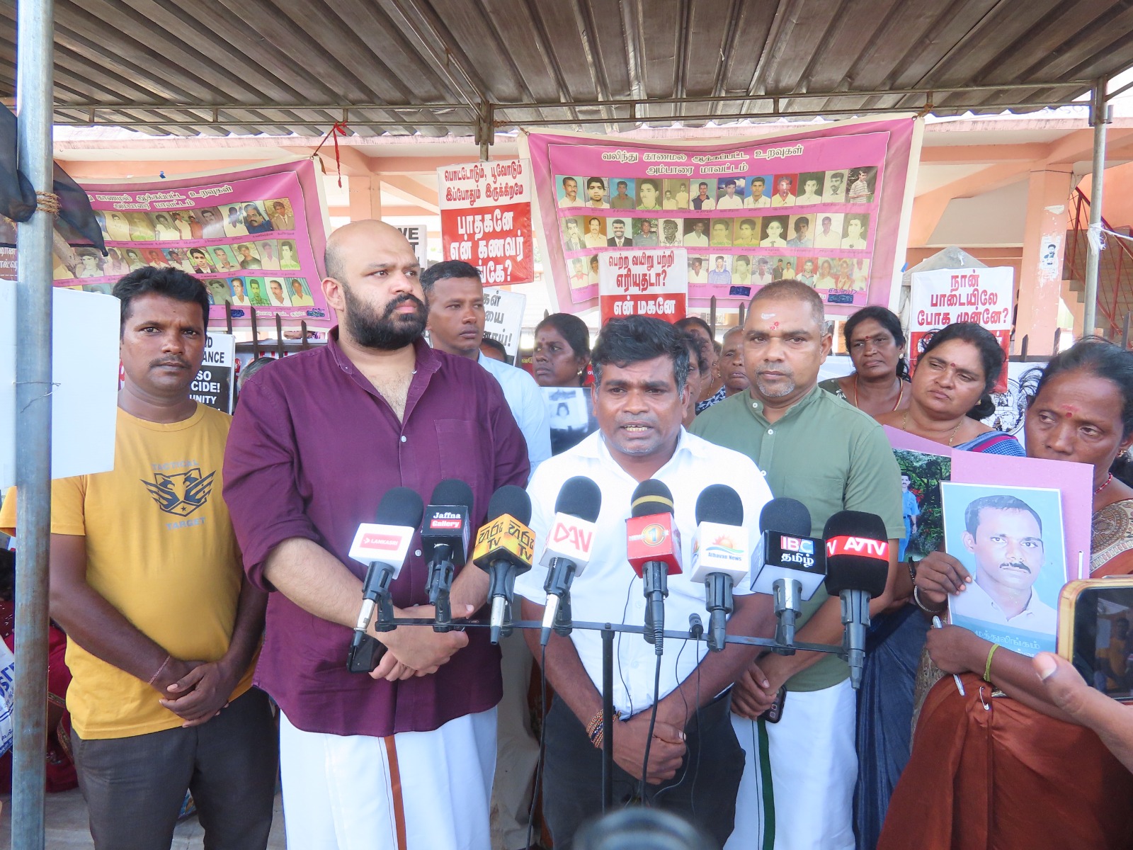 வடக்குஇ கிழக்கு வலிந்து காணாம லாக்கப்பட்ட உறவுகளின் சங்கத்தினரால் ஸ்ரீலங்காவின் உள்நாட்டு பொறி முறையை நிராகரிக்கின்றோம் தமிழின வழிப்பு வலிந்து காணாமல் ஆக்கப்படுதல் போர் குற்றங்கள் மற்றும் மனித புதைகுழிகள் குறித்து நாம் சர்வதேச சுயாதீன விசாரணையை மட்டுமே கோரு கின்றோம் எனும் தொனிப் பொருளுடன் இப் போராட்டம் நடைபெற்றிரந்தமை குறிப்பிடத்தக்கது.