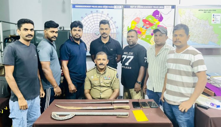யாழ்ப்பாணம் பாஷையூர் பகுதியில் ஹெரோயின் போதைப் பொருளுடன் இளைஞர் ஒருவர் கைது செய்யப்பட்டதுடன் மூன்று வாள்கள் மற்றும் கையடக்க தொலைபேசி என்பனவும் மீட்கப்பட்டது.