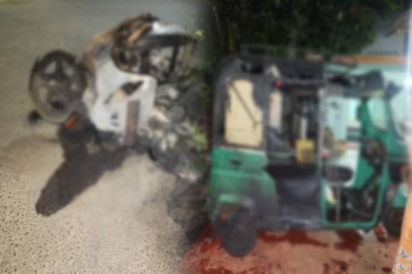 மோட்டார் சைக்கிளில் வந்த குறித்த குழு, வீட்டின் முற்றத்தில் நிறுத்தப்பட்டிருந்த முச்சக்கர வண்டிக்கு மண்ணெண்ணெய் ஊற்றி தீ வைத்துள்ளதாக தெரிவிக்கப்படுகின்றது.