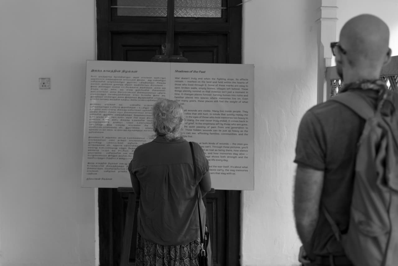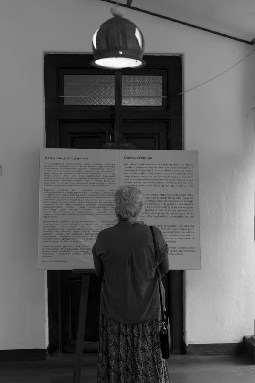 யாழ்ப்பாணத்தைச் சேர்ந்த சர்வதேச விருதுபெற்ற ஆவணப்பட புகைப்படக் கலைஞர் தர்மபாலன் திலக்சனின் புதிய புகைப்படக் கண்காட்சி “Shadows of the Past” கடந்த 8 ஆம் திகதி முதல் 17 ஆம் திகதி வரை இல, 50 கண்டி வீதி, யாழ்ப்பாணத்தில் அமைந்துள்ள கலம் கலாச்சார மையத்தில் நடைபெறுகிறது.