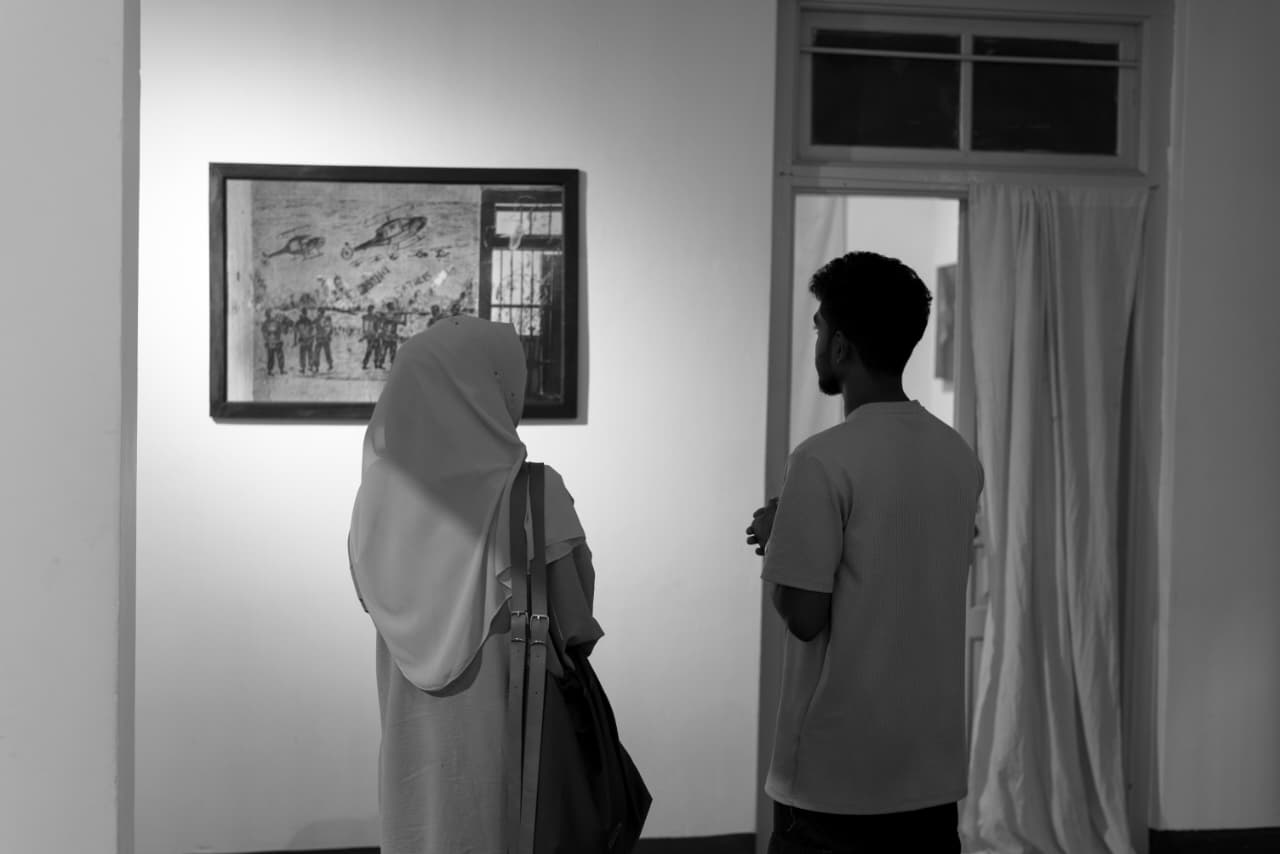 இந்தக் கண்காட்சி இலங்கையின் உள்நாட்டுப் போருக்குப் பிறகு நிலங்கள், வீடுகள், மக்களின் நினைவுகளில் பதிந்த காயங்களையும் அமைதியான நினைவுகளையும் பதிவு செய்கிறது. போரின் நேரடி காட்சிகளுக்கு அப்பால், அதன் நிழல்களில் வாழும் மக்களின் உணர்வுகளையும் மனநிலையையும் திலக்சன் தனது புகைப்படங்களின் வழியே வெளிப்படுத்தியுள்ளார்.