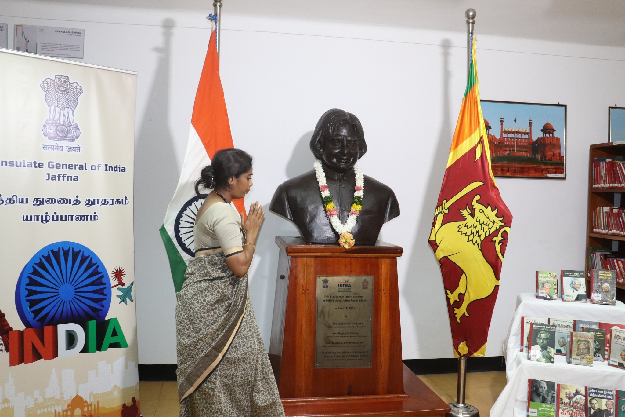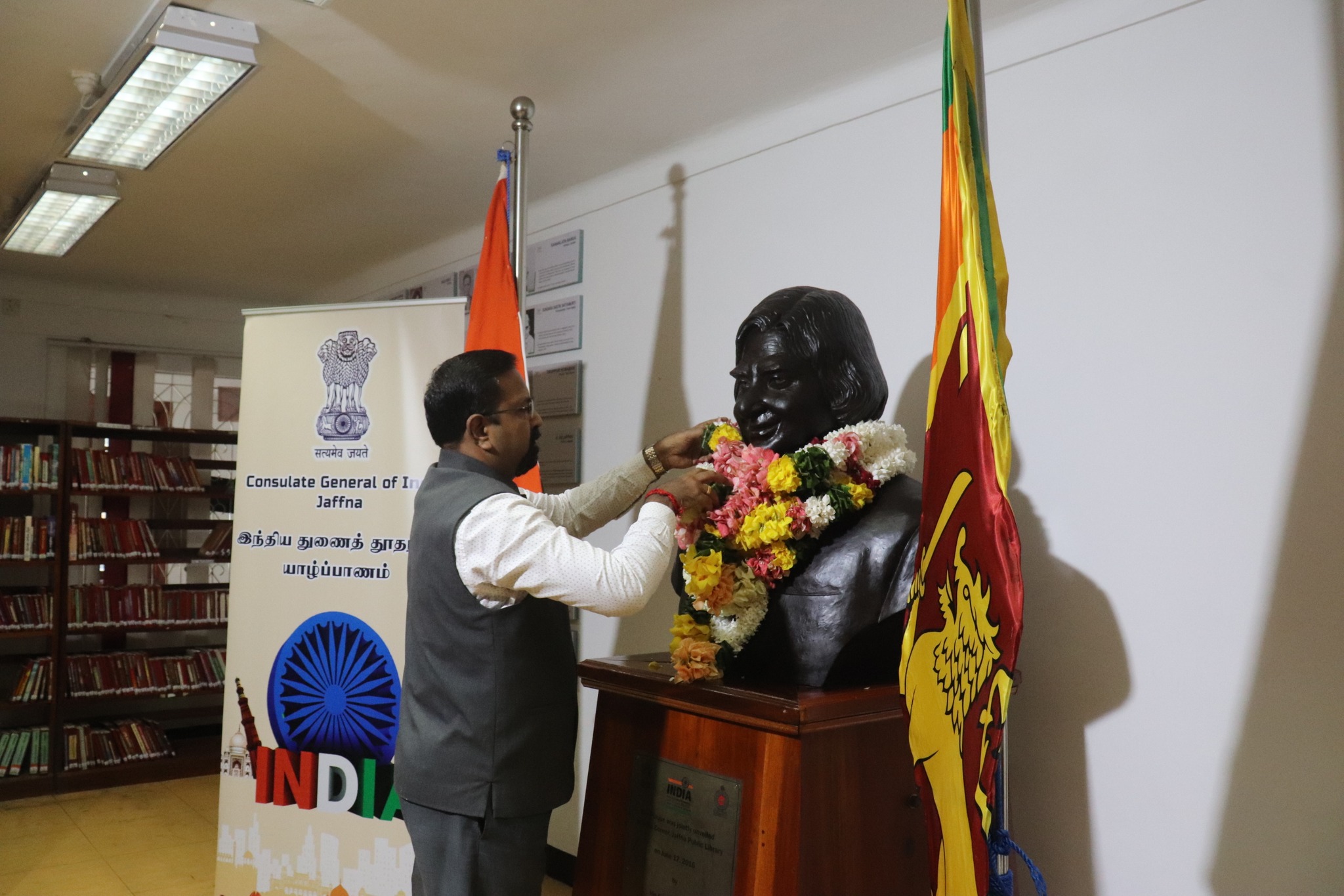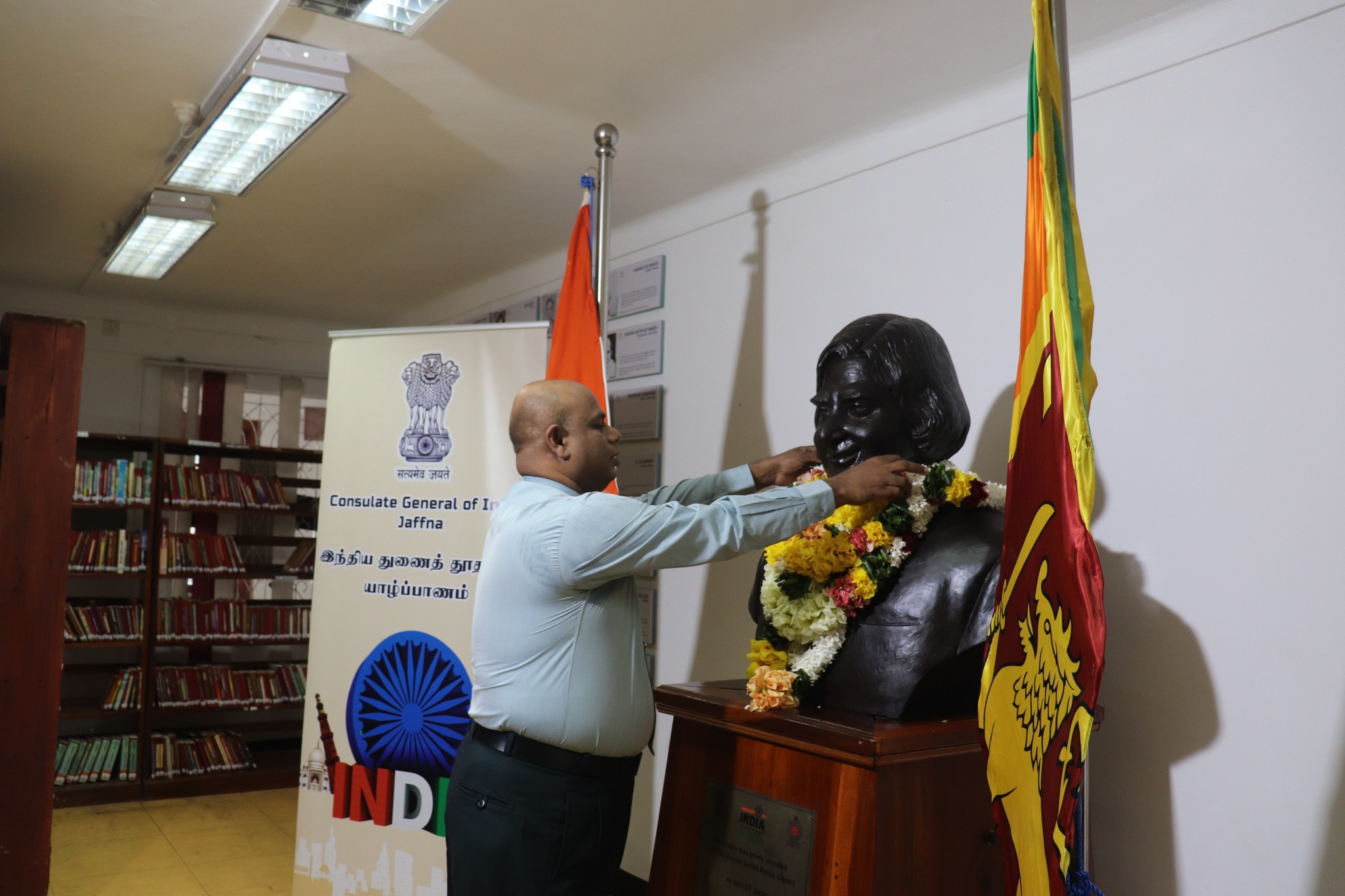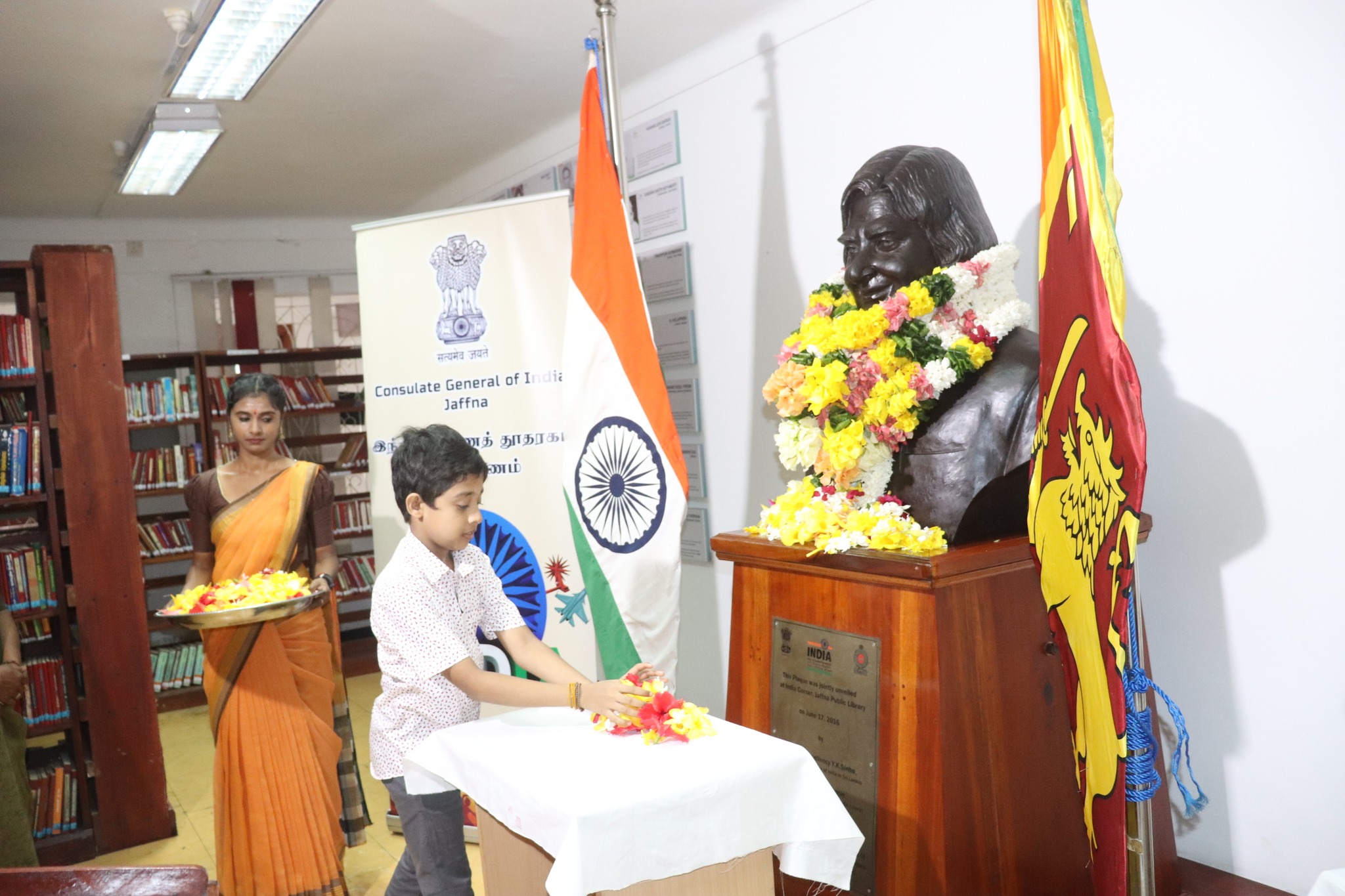 இந்தியாவின் முன்னாள் குடியரசுத் தலைவர், மக்களின் ஜனாதிபதி என போற்றப்படும் விஞ்ஞானி, டாக்டர் ஏ.பி.ஜே. அப்துல் கலாமின் பிறந்த நாளை முன்னிட்டு யாழ்ப்பாணம் பொது நூலகத்தின் இந்தியன் கோனர் பகுதியில் அமைந்துள்ள அப்துல் கலாமின் திருவுருவ சிலைக்கு இன்றைய தினம் புதன்கிழமை மலர் மாலை அணிவித்து மலர் தூவி அஞ்சலி செலுத்தப்பட்டது.