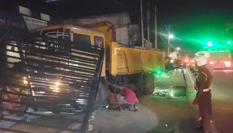 கிளிநொச்சி பகுதியில் இருந்து யாழ்ப்பாணத்திற்கு கற்களை ஏற்றி வந்த டிப்பர் வாகனம் , வேக கட்டுப்பாட்டை இழந்து, யாழ்ப்பாணம் – கண்டி நெடுஞ்சாலையில் சங்கத்தானை பகுதியில் வீதியில் நிறுத்தி வைக்கப்பட்டிருந்த முச்சக்கர வண்டியுடன் மோதி , கடை யொன்றுடன் மோதி தனது இயக்கத்தை நிறுத்தியது.