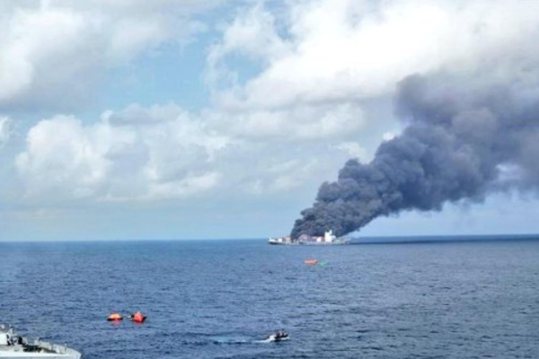 ஏடன் வளைகுடாவில் தீப்பற்றி எரியும் கப்பல்; காரணம் என்ன?