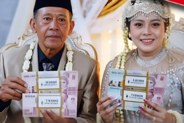 இந்தோனேசியா, கிழக்கு ஜாவாவின் பசிடன் ரீஜென்சியில், 74 வயதான முதியவர் தர்மன், 24 வயதான ஷெலா அரிக்கா என்ற பெண்ணை திருமணம் செய்ய சுமார் ரூ.1.8 கோடி வரதட்சணை கொடுத்துள்ளார்.