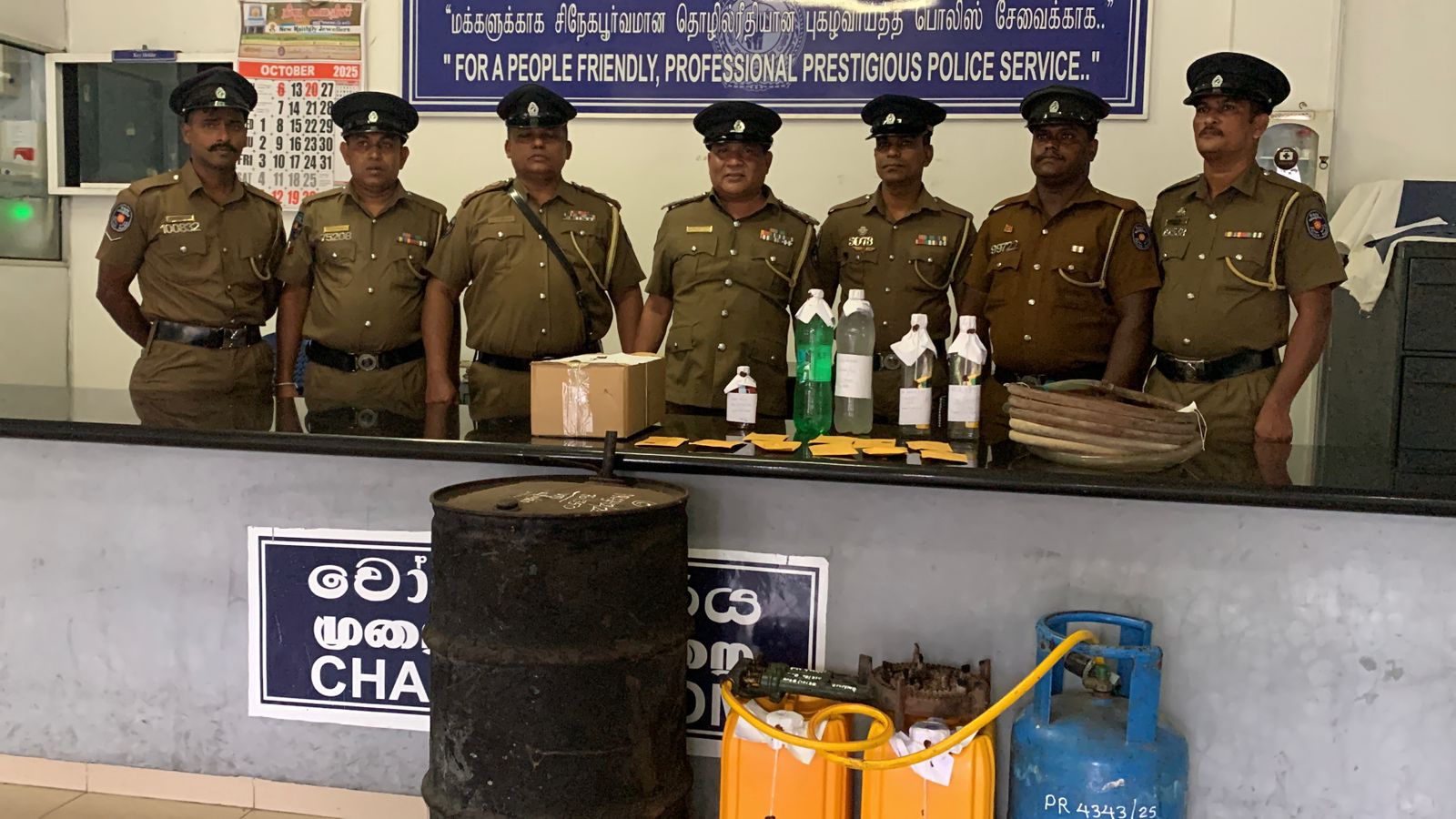 கடந்த 14ஆம் திகதி முதல் 20ஆம் திகதி வரையில் பொலிஸார் மேற்கொண்ட விசேட நடவடிக்கையின் போது, 45 போத்தல் கசிப்பு, கசிப்பு காய்ச்சுவதற்கு பயன்படுத்தப்பட்ட உபகரணங்கள் , 90 லீட்டர் கோடா , சாராயம் மற்றும் போதைப்பொருட்கள் என்பவற்றை உடைமையில் வைத்திருந்த குற்றச்சாட்டுக்களின் கீழ் அவர்கள் கைது செய்யப்பட்டிருந்தனர்