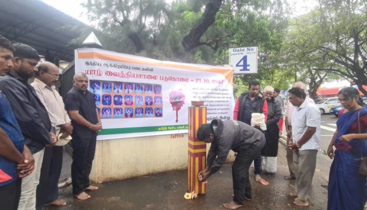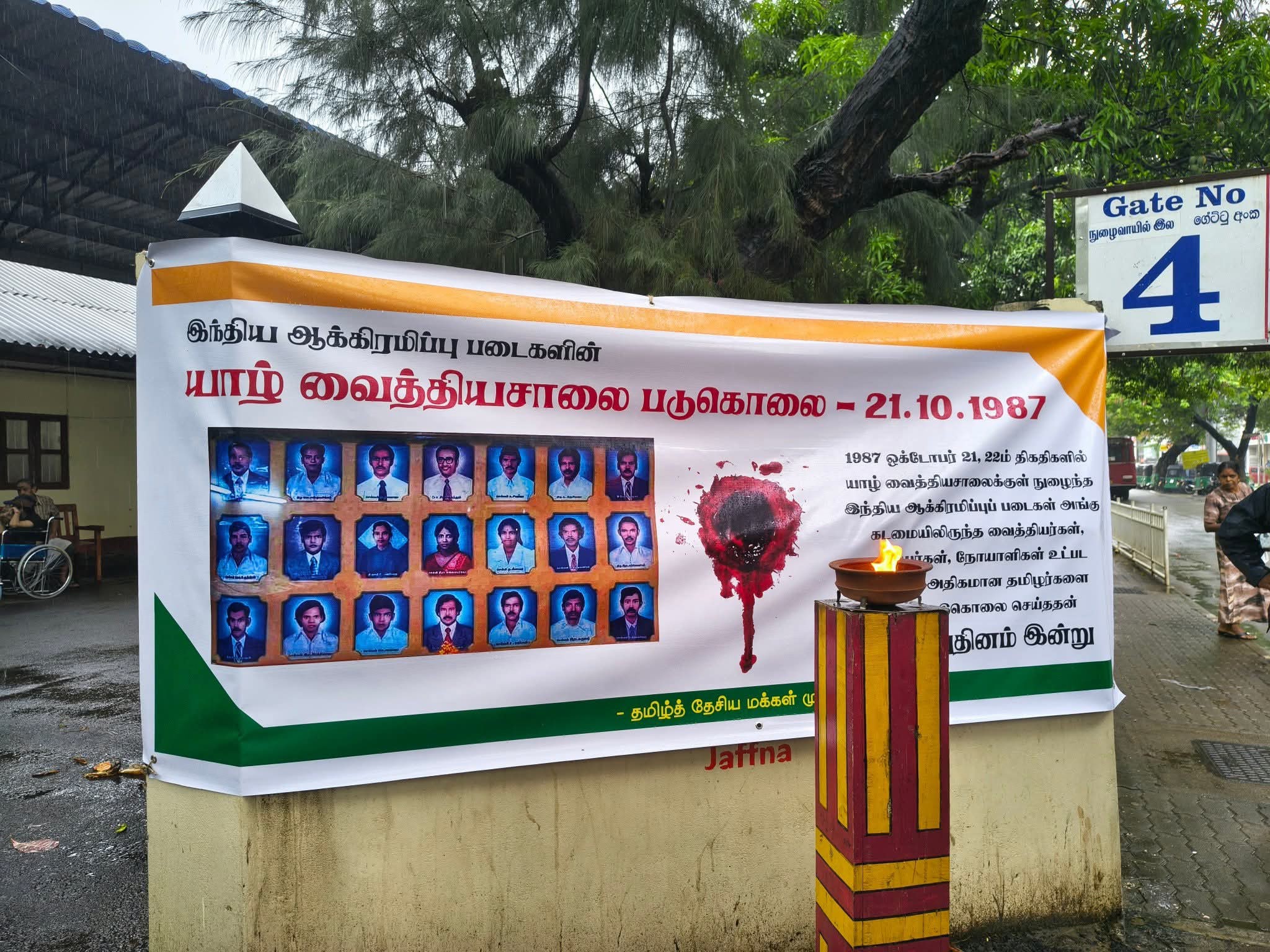 யாழ்.போதனா வைத்தியசாலையினுள் அத்துமீறி உள்நுழைந்த இந்திய இராணுவத்தினரால் சுட்டுப்படுகொலை செய்யப்பட்ட வைத்தியர்கள் உள்ளிட்ட 68 பேரின் நினைவேந்தல் நிகழ்வுகள் இன்றைய தினம் செவ்வாய்க்கிழமை யாழ்.போதனா வைத்திய சாலை முன்றலில் தமிழ் தேசிய மக்கள் முன்னணியின் ஏற்பாட்டில் நடைபெற்றது.