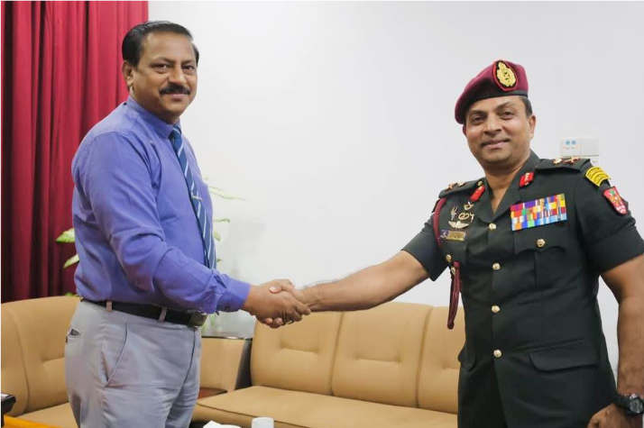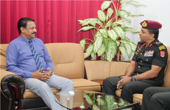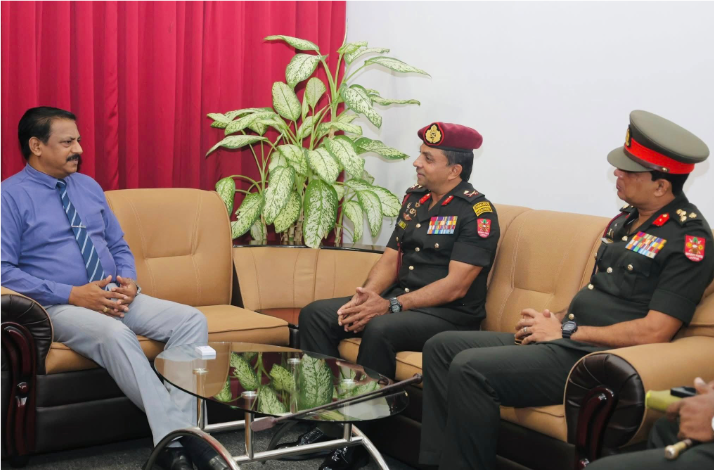 யாழ்ப்பாண மாவட்டத்தின் 51 ஆவது படையணியின் கட்டளைத் தளபதியாக இன்று பொறுப்பேற்ற மேஜர் ஜெனரல் ராஷிக், யாழ்ப்பாண மாவட்ட அரசாங்க அதிபர் மருதலிங்கம் பிரதீபன் அவர்களை இன்றைய தினம்(24.10.2025) மு. ப. 10.00 மணிக்கு மரியாதை நிமித்தம் அரசாங்க அதிபர் அலுவலகத்தில் சந்தித்து கலந்துரையாடினர்.