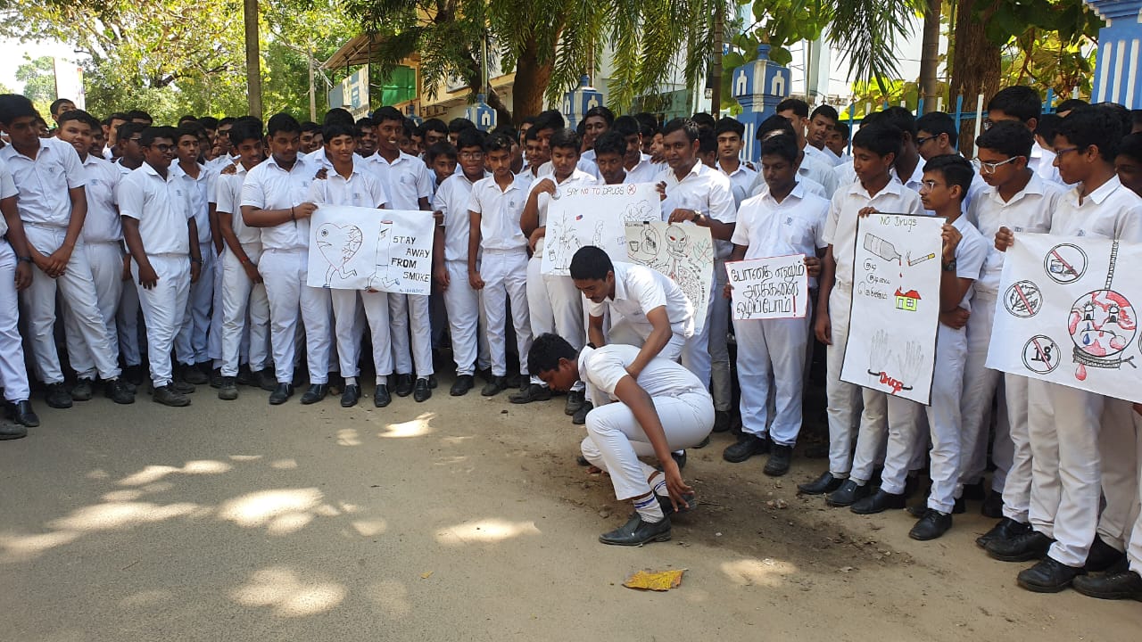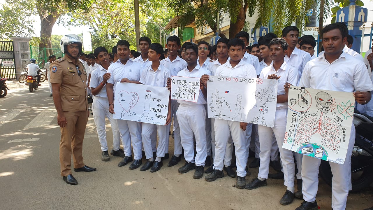 அதனை முன்னிட்டு , யாழ்ப்பாண தலைமை பொலிஸ் நிலைய பொலிஸாரின் ஏற்பாட்டில் யாழ்ப்பாணம் இந்துக் கல்லூரியில் போதைப்பொருளை எதிரான விழிப்புணர்வு செயற்பாடு முன்னெடுக்கப்பட்டது.