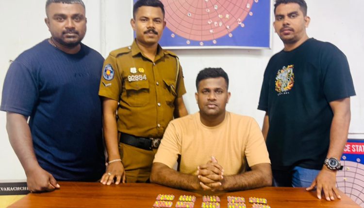 சாவகச்சேரி பொலிஸாருக்கு கிடைத்த இரகசிய தகவலின் அடிப்படையில் சாவகச்சேரி அரசடி பகுதியை சேர்ந்த 25 வயது இளைஞனை போதை மாத்திரைகளுடன் கைது செய்துள்ளனர்.