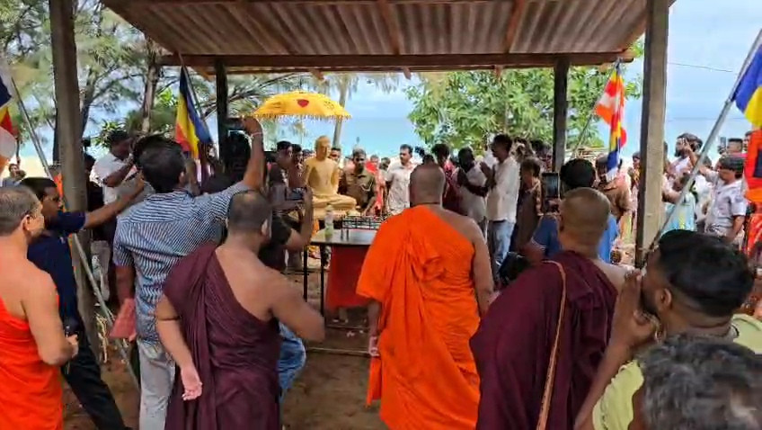 திருகோணமலையில் அகற்றப்பட்ட அதே இடத்தில் பெரும் ஆரவாரத்துடன் மீண்டும் வந்தமர்ந்த புத்தர்!