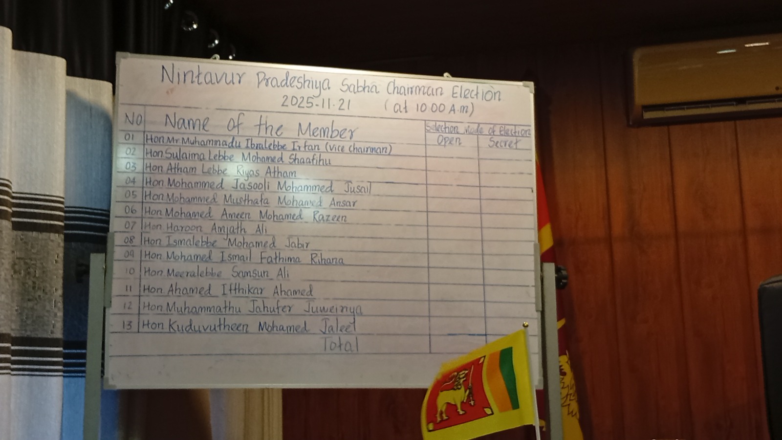 நிந்தவூர் பிரதேச சபை புதிய தவிசாளர் தெரிவு- கோரம் இன்றி தெரிவு மறு அறிவித்தல் வரை ஒத்திவைப்பு