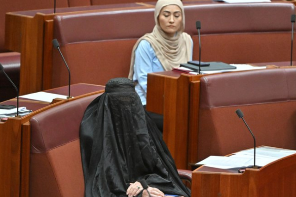 தீவிர வலதுசாரி செனட்டர் பௌலின் ஹான்சன் பர்தா அணிந்து சபைக்குள் நுழைந்ததால், அவை நடவடிக்கைகள் ஒத்திவைக்கப்பட்டதாக கூறப்படுகிறது.