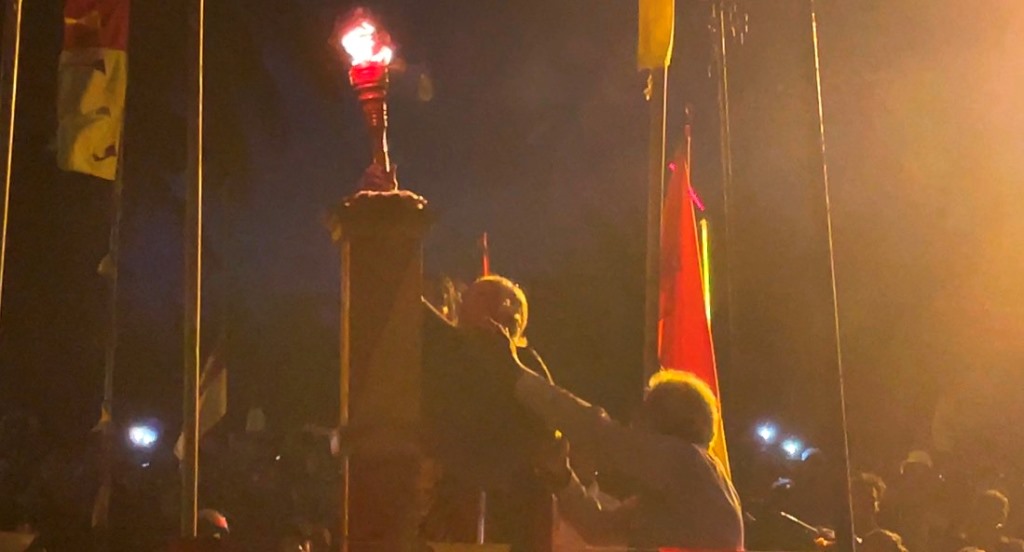 யாழ்ப்பாணம் , கோப்பாய் துயிலுமில்லத்தில் இடம்பெற்ற மாவீரர் நாள் நினைவேந்தலில் மூன்று மாவீரர்களின் தாயான நடேசு தவமணி பொது சுடரினை ஏற்றி வைத்தார்.