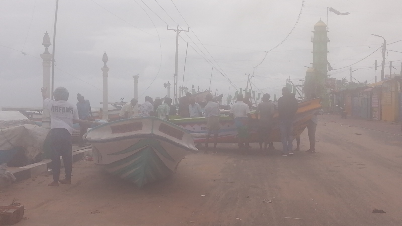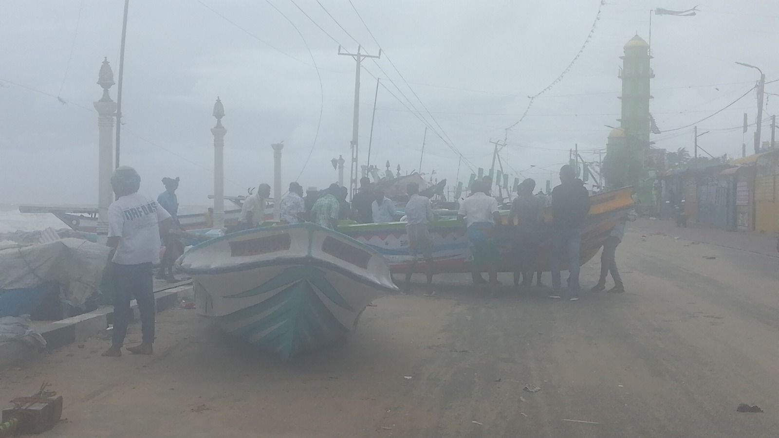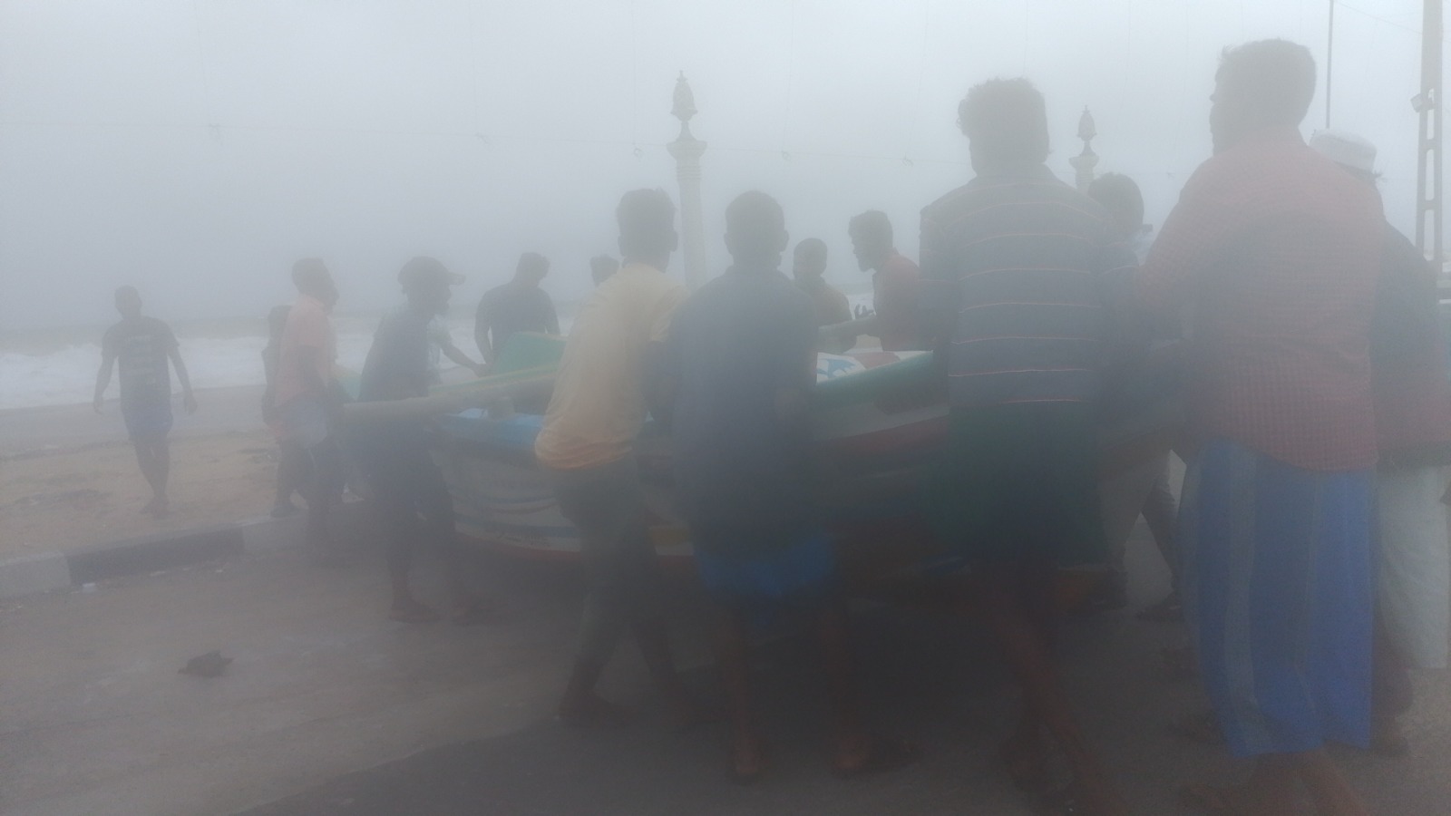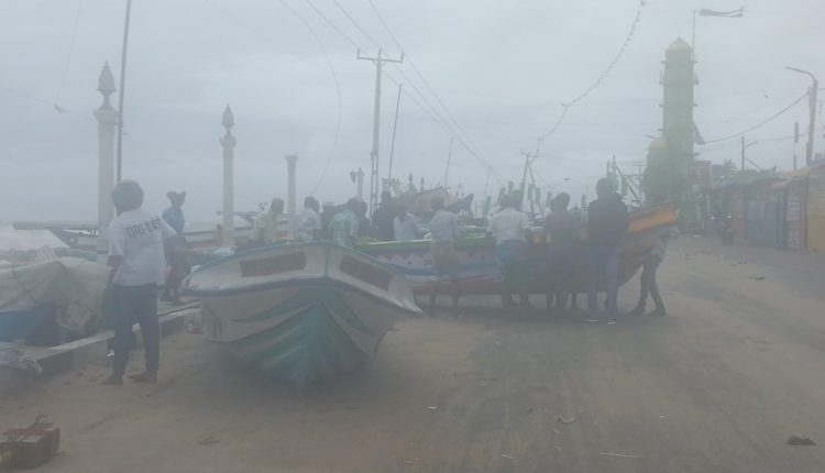 இதனால் அப்பகுதியில் உள்ள வள்ளங்கள் தோணிகள் படகுகளை கரையை நோக்கி மீனவர்கள் நகர்த்தி வருகின்றனர்.