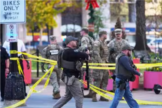 வெள்ளை மாளிகை அருகே மர்மநபர் ஒருவர் நடத்திய துப்பாக்கிச் சூட்டில் தேசிய காவல் படை வீரர்கள் இரண்டு பேர் பலத்த காயம் அடைந்து ஆபத்தான நிலையில் மருத்துவமனையில் சிகிச்சை பெற்று வருகின்றனர்.