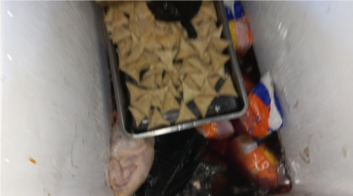 அம்பாறை மாவட்டம் சம்மாந்துறை சுகாதார வைத்திய அதிகாரி அலுவலகத்திற்கு உட்பட்ட பிரபலமான ஒரு உணவகத்தின் குளிரூட்டியில் இருந்து சுகாதார அதிகாரிகளினால் கைப்பற்றப்பட்ட பழுதடைந்த 144 சம்சா, 4 kg பிசைந்த மாவு, 8 kg சோறு உட்பட பல பழைய பொருட்கள் நீதிமன்ற உத்தரவின் பேரில் அழிக்கப்பட்டன.