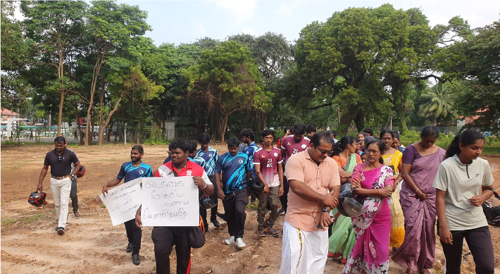 இந்நிலையில் பழைய பூங்காவில் உள்ளக விளையாட்டு அரங்கு தேவை என்பதை வலியுறுத்தி விளையாட்டு துறைசார்ந்தவர்கள் பேரணியை முன்னெடுத்தனர்.