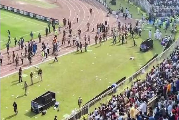 #WATCH | Kolkata, West Bengal: Angry fans resort to vandalism at the Salt Lake Stadium in Kolkata, alleging poor management of the event.