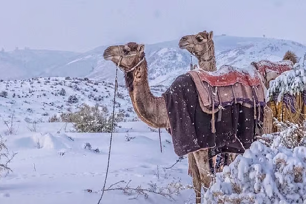 இந்த அசாதாரண பனிப்பொழிவானது சவுதி அரேபியாவின் தபூக் மாகாணத்தில் உள்ள மலைத்தொடர்களின் தோற்றத்தை மாற்றியுள்ளது.