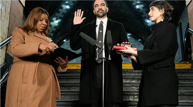 நியூயாா்க் மேயராக மம்தானி பொறுப்பேற்பு! குர்ஆன் மீது சத்தியப்பிரமாணம்!